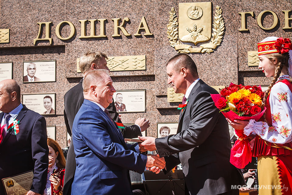 В Могилеве прошла торжественная церемония вручения свидетельств о занесении на областную Доску почета. Председатель Могилевского облисполкома Леонид Заяц вручил свидетельства о занесении на областную Доску почета и благодарности облисполкома 24-м предприятиям, организациям, учреждениям, достигшим по итогам работы в 2018 году высоких результатов, 15-ти лауреатам специальной премии облисполкома «Человек года Могилевщины», четырем победителям национального конкурса «Предприниматель года».