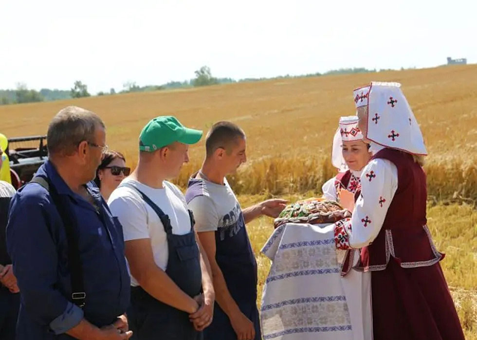 «Трэба жыта зажынаць. Пара ядронаму жыту ў дзяжы падыходзiць, пара ядронаму жыту ў печы падыходзіць» – в поле вышли жнейки, срезали серпами первые колосья и аккуратно связали их в снопы, которые с добрыми пожеланиями и надеждой на хороший урожай вручили председателю райисполкома Сергею Ермолицкому и директору КСУП «Круглянский-Агро» Алексею Жерносекову.