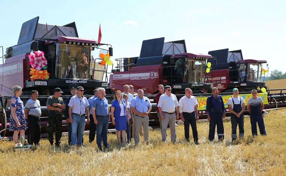 А затем комбайнеры заняли места в кабинах своей техники и отправились в поле за новым урожаем. Почетное право сопроводить первый выход техники на зерновое поле предоставилось главе района Сергею Ермолицкому.