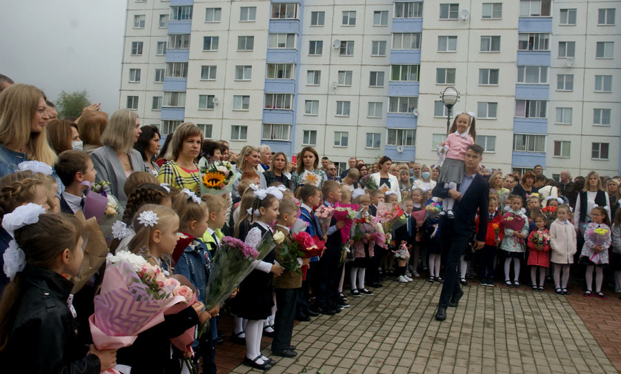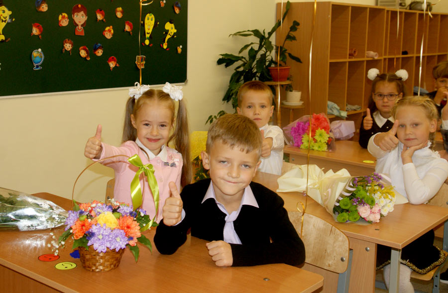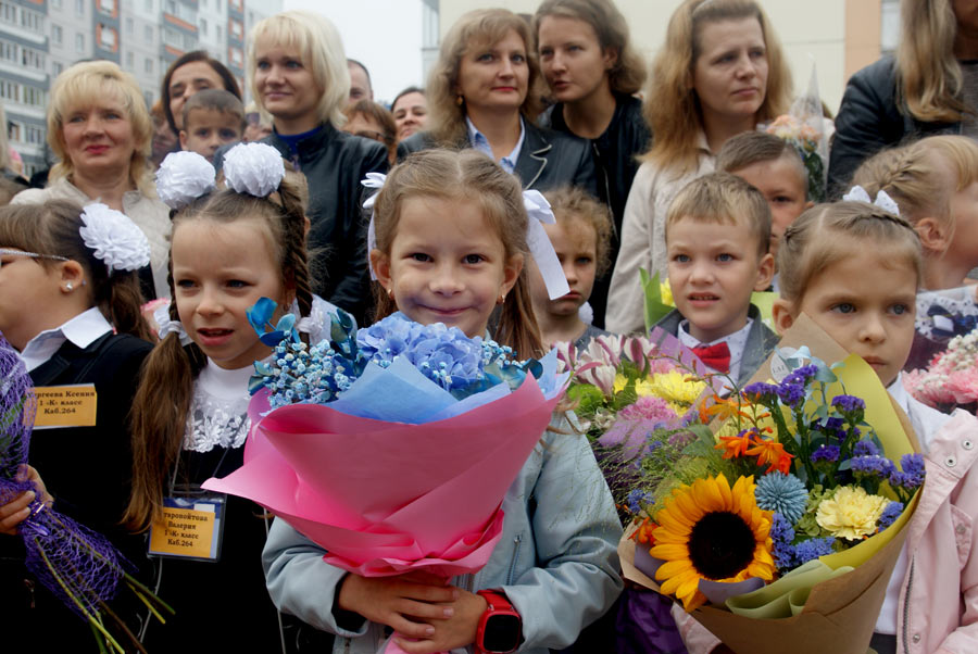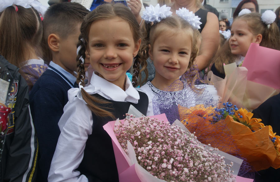В этом году здесь за парты впервые сели 257 первоклассников. Всего же в школе — 2577 учеников и 95 классов.