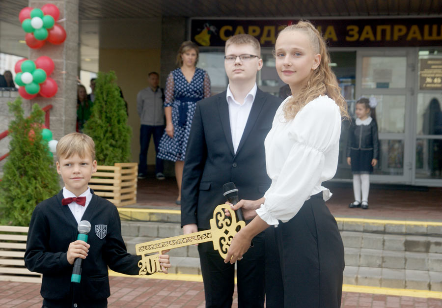 Торжественная линейка прошла в средней школе №45 в микрорайоне Спутник Могилева. Поздравить с праздником ребят, педагогов, родителей пришли многие почетные гости, среди которых председатель Могилевского горисполкома Владимир Цумарев.Здесь сегодня двойной праздник — День знаний и юбилей первого звонка, который прозвенел в СШ № 45 Могилева ровно 10 лет назад.