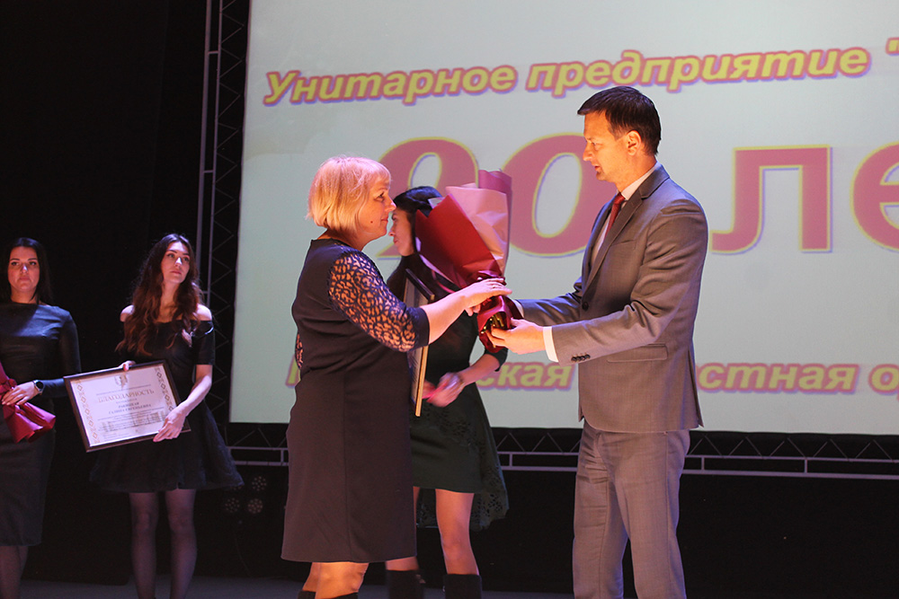 На базе областного методического центра народного творчества и культурно-просветительной работы в этот день состоялось вручение подарков и наград сотрудникам предприятия за многолетний, добросовестный труд, высокое профессиональное мастерство, активное участие в общественной деятельности, личный вклад в развитие предприятия и участие в спортивно-общественных мероприятиях от лица Могилевского областного и городского исполнительных комитетов, областного и городского Советов депутатов, администрации Ленинского района Могилева, общественных организаций. Праздничную атмосферу дополнили номера концертной программы.