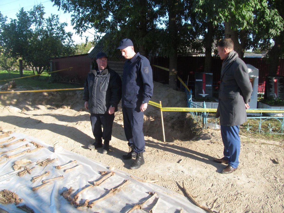 Прокурор Славгородского района Алексей Пуховский произвел осмотр места происшествия, в ходе которого были изъяты костные останки не менее 65 человек, из которых 5 принадлежат детям. Также обнаружены гильзы, пули, элементы одежды и обуви, пряжки ремней, ключи, монеты, зубные коронки, а также стеклянный градусник, кольцо и ряд других элементов вещей личного обихода. По результатам осмотра назначены необходимые экспертизы.