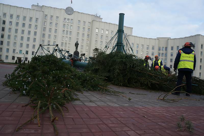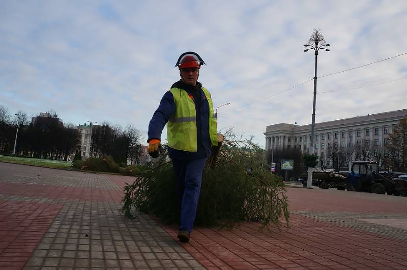 В Могилеве на площади Ленина устанавливают главную новогоднюю елку области. Ее основой традиционно станет металлическая конструкция из сборных модулей.