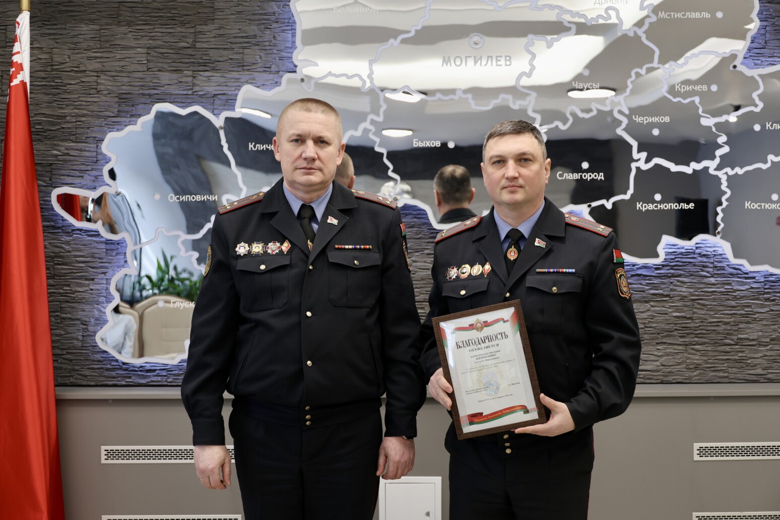 В Могилевском областном управлении Департамента охраны состоялось торжественное мероприятие, приуроченное ко Дню белорусской милиции. На этот раз в центре внимания оказались те, кто ежедневно помогает создавать объективный и достоверный образ правоохранительной службы, — журналисты и представители пресс-служб.