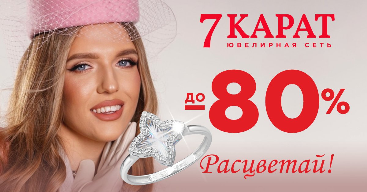 Ювелирные украшения — это не просто аксессуары, это активы, стоимость которых растет год от года! Сеть магазинов «7 КАРАТ» запускает масштабную акцию «Ликвидация» (26.03 – 06.05.2026), чтобы сделать роскошь максимально доступной. Скидки на серебро достигают 80%, на золото — 55%.