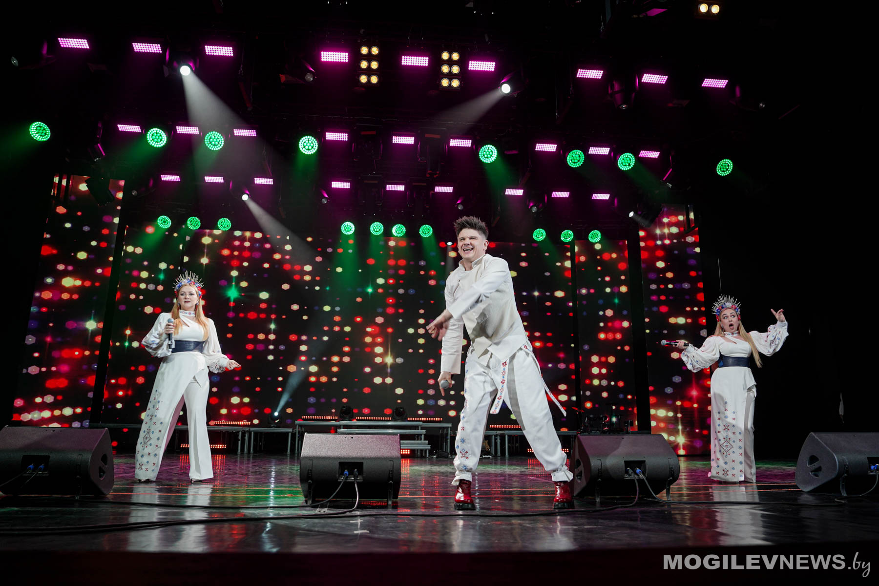 Открывала праздничное мероприятие песня «Две сестры — Беларусь и Россия», которую вместе с артистами пел весь зал. Яркие эмоции зрителям подарили вокальные и танцевальные коллективы двух стран, популярные исполнители.