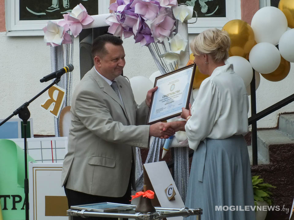Во время мероприятия председатель Могилевского областного отделения «Белорусский фонд мира» Андрей Никитин вручил директору школы свидетельство о присвоении статуса «Школа мира».