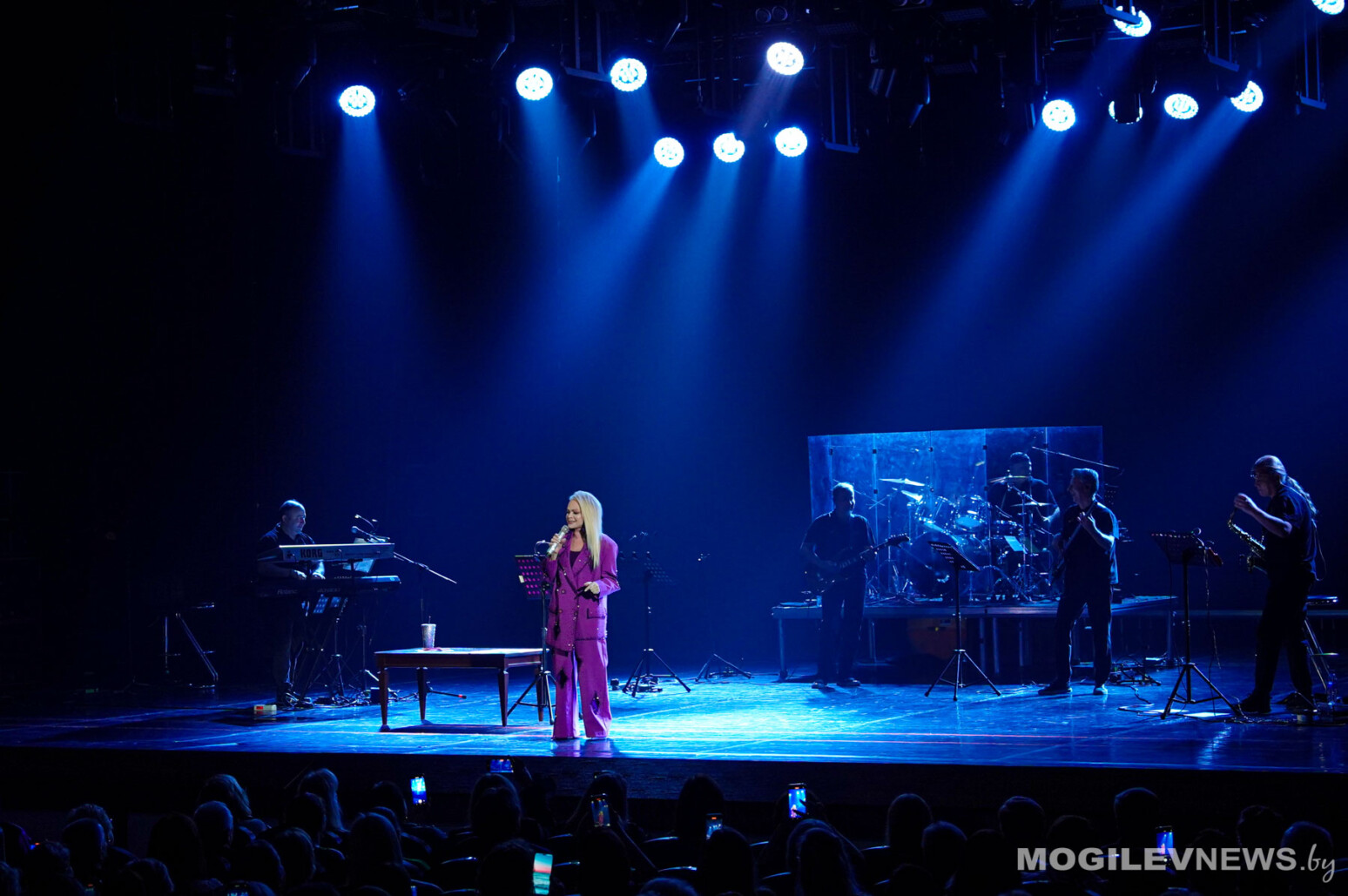 Артистка исполнила как всеми любимые хиты, так и новые композиции. Ее песни знает и поет уже не одно поколение. В этот вечер со сцены прозвучали такие хиты, как «Погода в доме», «Хочу быть любимой», «Льдинка» и многие другие. Особым подарком для могилевской публики стал дуэт с певицей, нашей землячкой Анной Трубецкой.