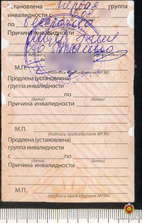 — По результатам исследований судебный эксперт пришел к выводу, что сам бланк удостоверения инвалида изготовлен предприятием, осуществляющим производство продукции данного вида (т.е. является подлинным). Однако первоначальное содержание удостоверения подвергалось техническому изменению, — рассказала официальный представитель управления ГКСЭ по Могилевской области Ирина Рачковская. — Ранее наклеенная фотография полностью удалена, на ее место наклеена ныне имеющаяся фотография и на ней дорисованы фрагменты линий окружностей оттиска печати.