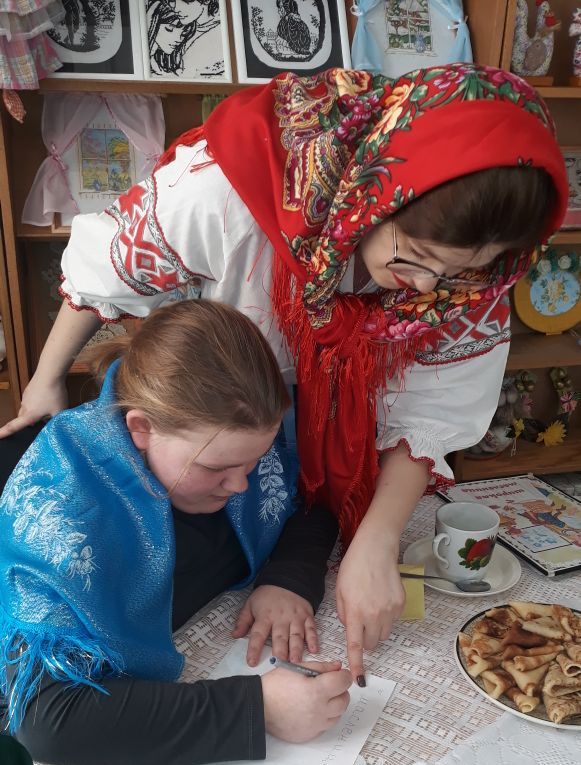 Посетители Чериковского РЦСОН празднуют Масленицу. Фото (2022)