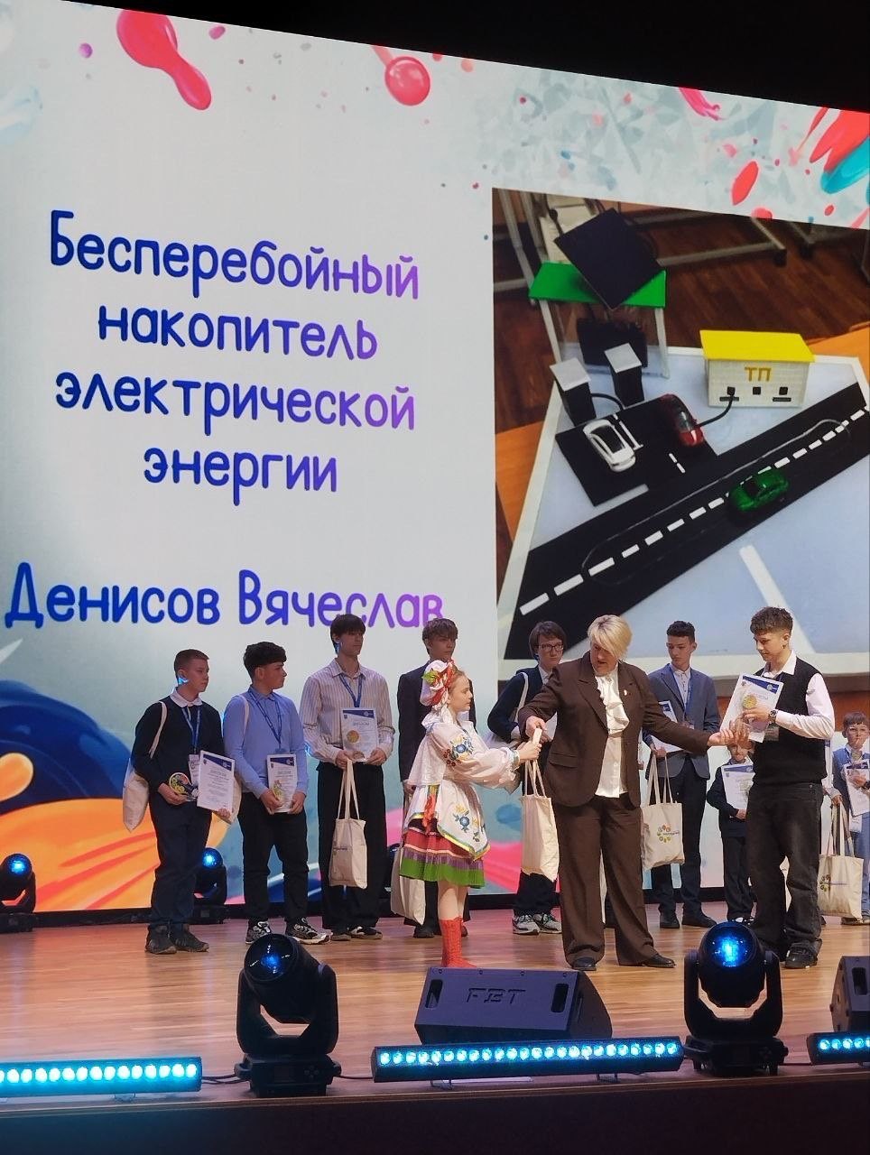 Вячеслав Денисов принял участие и в XIX Республиканском конкурсе проектов по экономии и бережливости «Энергомарафон», где стал обладателем диплома I степени в номинации «Проект практических мероприятий по энергосбережению», представив жюри бесперебойную накопительную зарядную станцию.