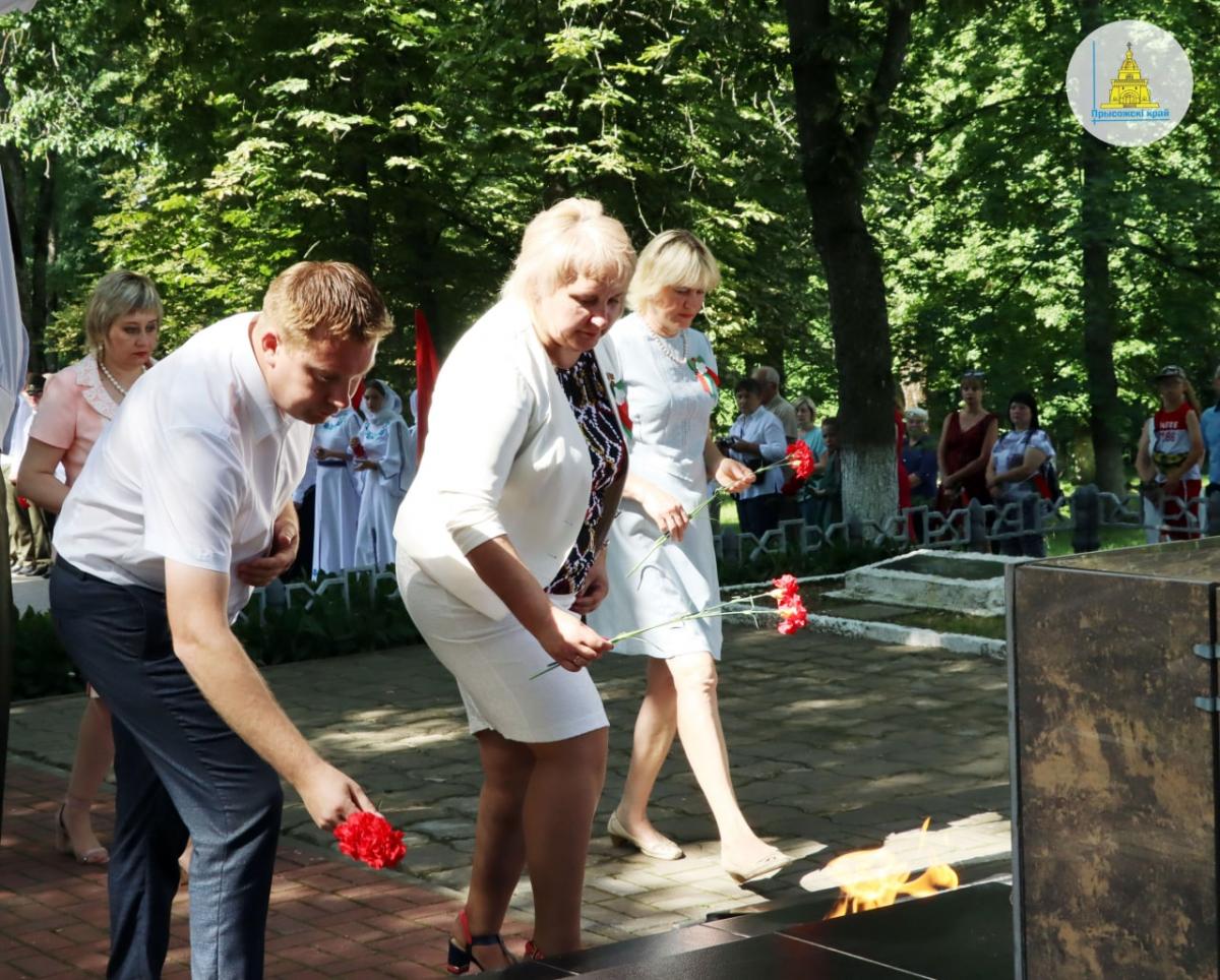 Представители власти, начальники управлений и отделов райисполкома руководители и делегации трудовых коллективов, члены общественных организаций, молодежь с флажками, цветами и шариками прошествовали к братской могиле в городском парке. Там состоялся митинг, во время которого глава района Сергей Михалюта, поздравляя собравшихся земляков с одним из самых значимых и дорогих праздников нашего народа, отметил: «Сегодня мы уверенно идем по своему пути к достижению главной цели: сильной и процветающей Беларуси. Всем нам вместе строить будущее Родины и ее благополучие!».