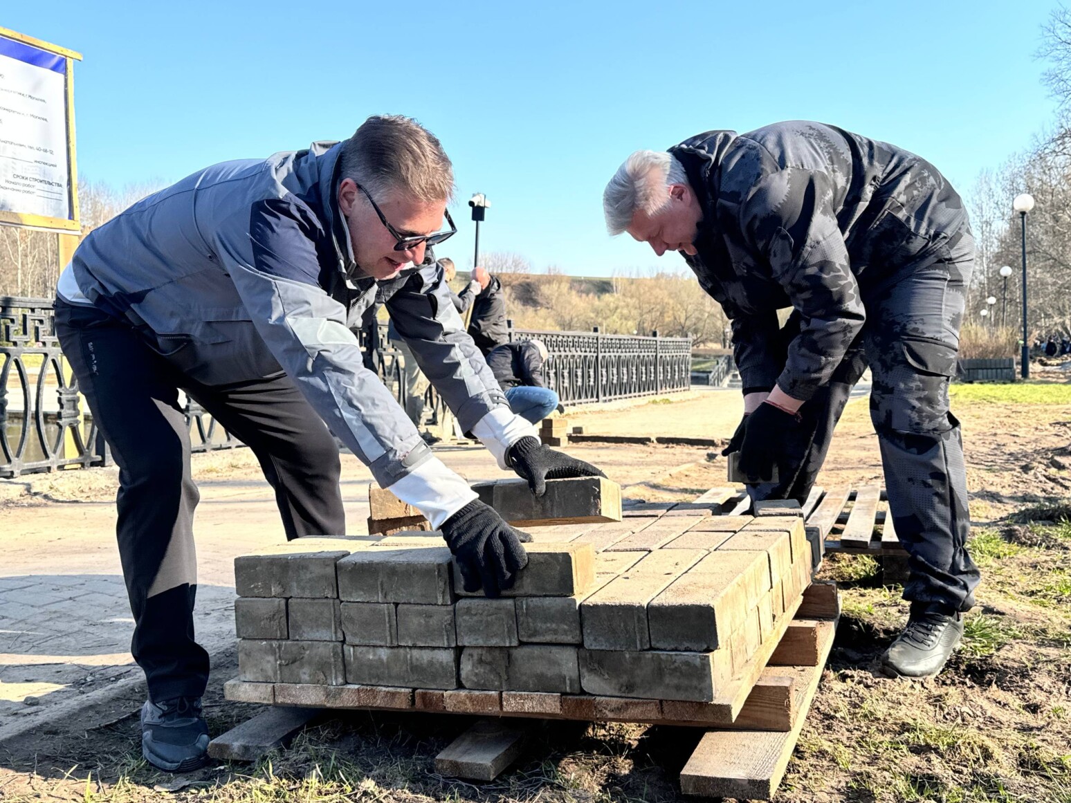 — В плане работ городского субботника — 240 локаций общегородских территорий и порядка 40 дворовых. Основная работа сегодня ведется в районе реки Дубровенки. Здесь идет возведение фонтана. Его мы планируем открыть уже этим летом, — отметил Сергей Чертков.