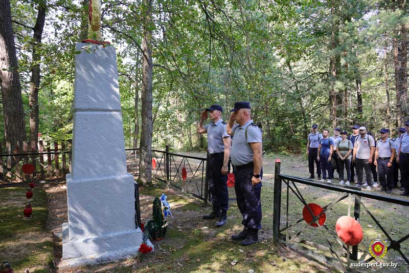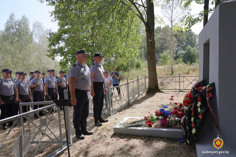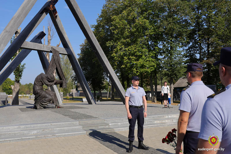 Начальник управления ГКСЭ по Могилевской области Ярослав Иосифович Федоринчик, обращаясь к своему коллективу, отметил важность посещения таких мест — это сохранение исторической памяти и правды о судьбе белорусского народа в годы Великой Отечественной войны. Чтобы сохранить независимость нашей страны и чистое небо, подчеркнул руководитель, необходимо знать и помнить страшные уроки прошлого, продолжать кропотливую работу по увековечиванию памяти всех погибших. Минутой молчания и возложением цветов к монументу женщины, в скорби склонившейся над пустой колыбелью, эксперты почтили память невинных жертв фашизма.