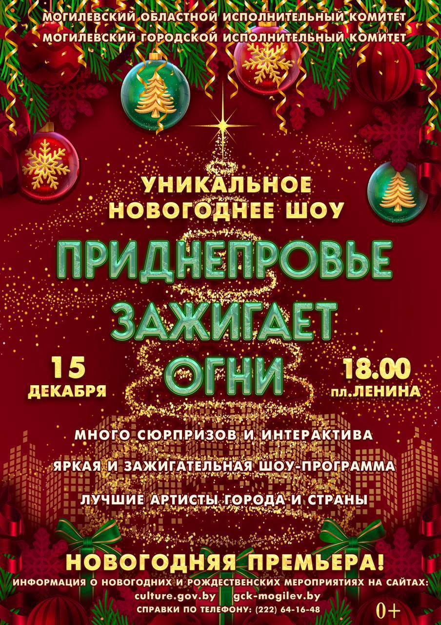 Могилев готовится к самому яркому предновогоднему событию! 15 декабря на площади Ленина состоится торжественное зажжение огней на главной елке области. В этот вечер гостей ждет уникальное музыкальное шоу «Приднепровье зажигает огни».