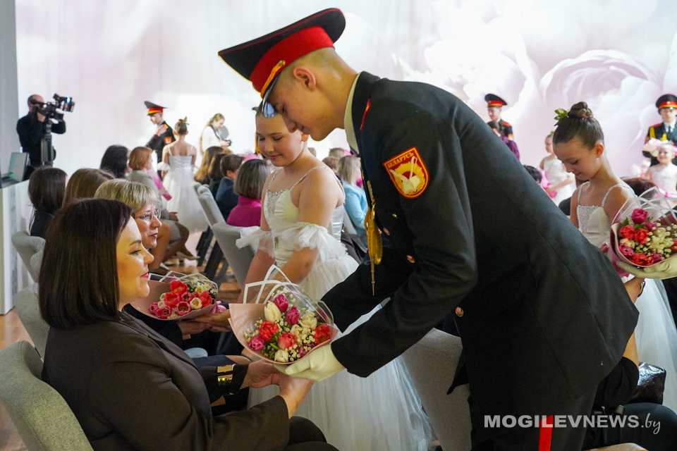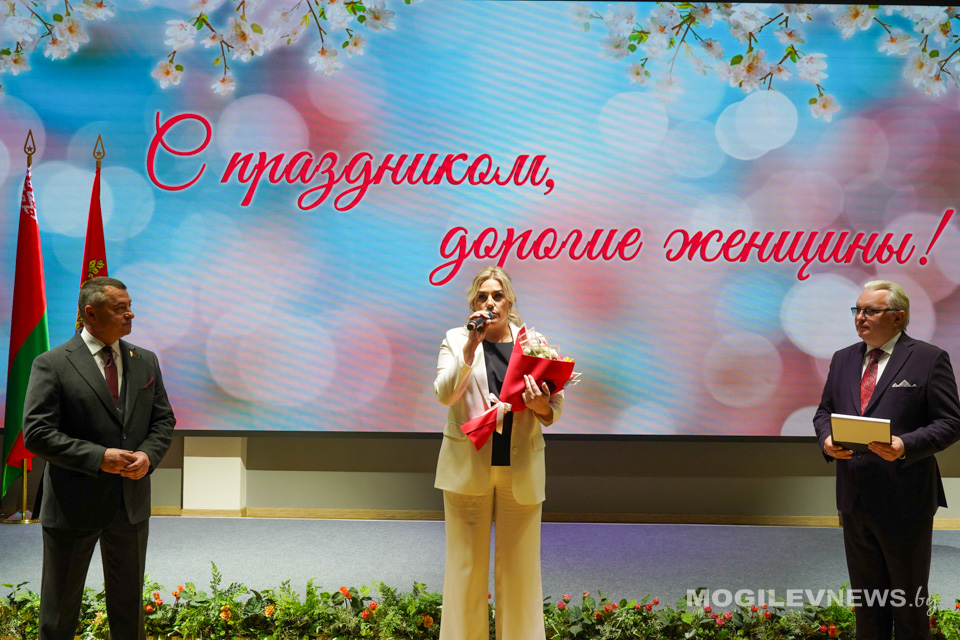 Всем участницам торжественного мероприятия вручили цветы, а творческие коллективы и исполнители Могилева порадовали женщин своими выступлениями.
