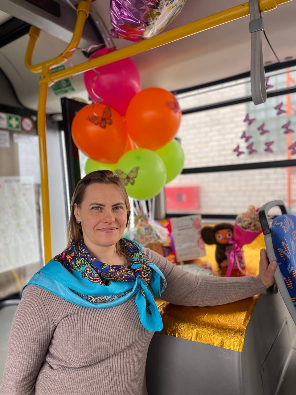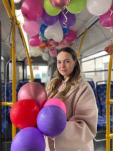 Что же ждало пассажирок? Вместо привычных объявлений остановок — музыка, вместо серых поручней — разноцветные шары, а вместо спешки — несколько секунд радости.