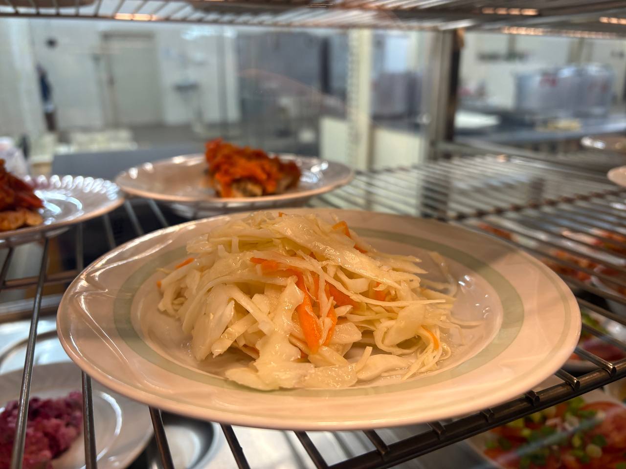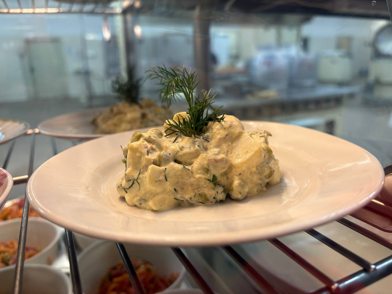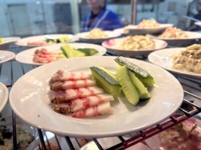 Заглянув в столовую, глаза сразу разбегаются от изобилия. Здесь собрана вся сила и щедрость нашей земли: сытная картофельная бабка, супы — крупеня и полёвка, румяные пирожки с картошкой, тушеная картошка с мясом, томленая, словно из добротной печи, ароматные белорусские котлеты с печенью и, конечно, классика — сало с огурцом… И много-много чего еще вкусного, а главное — своего, родного.