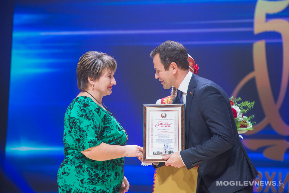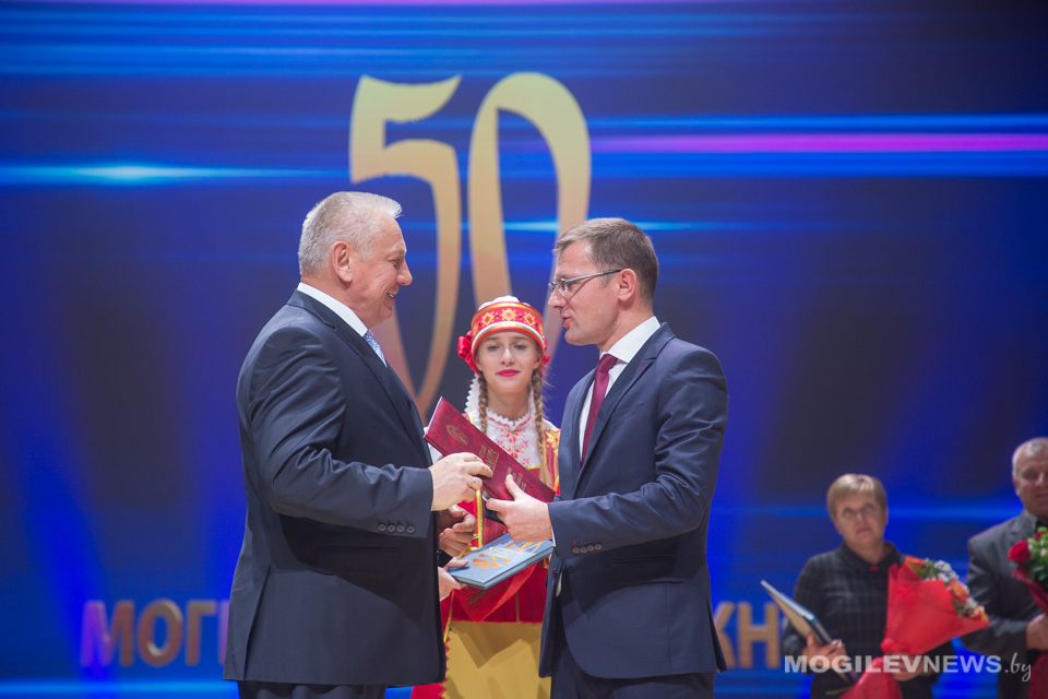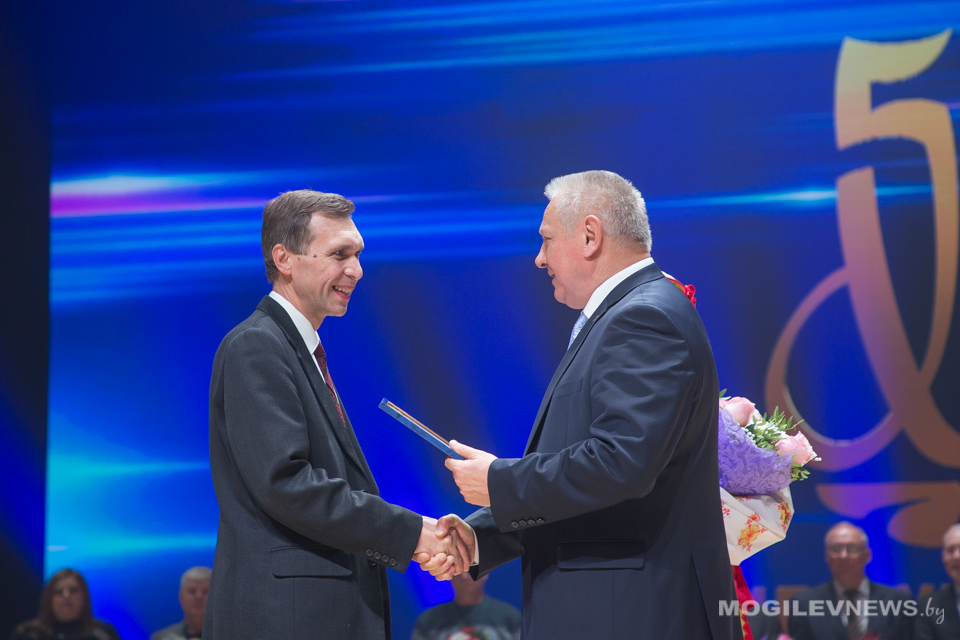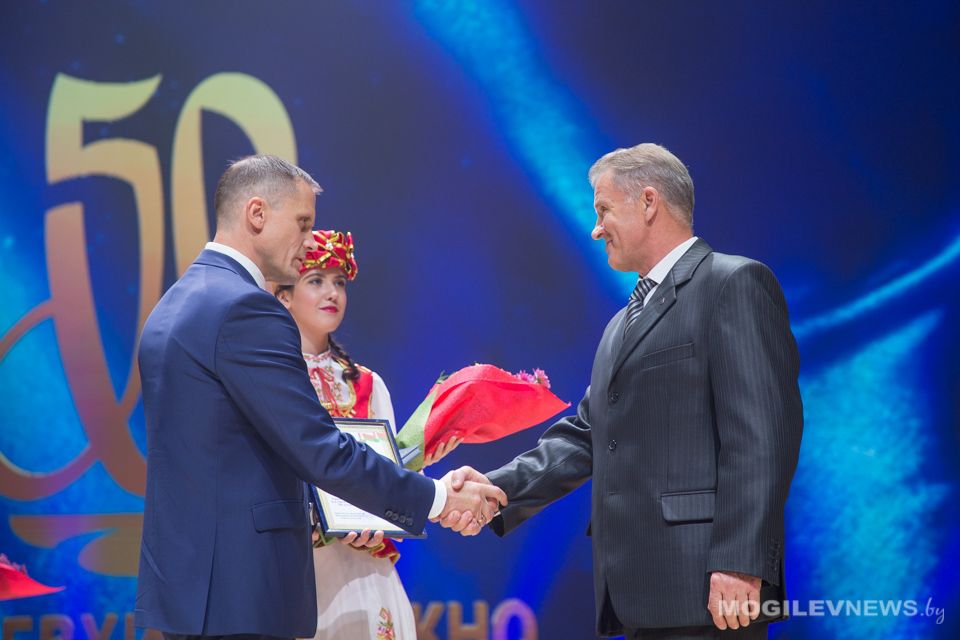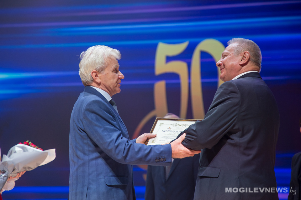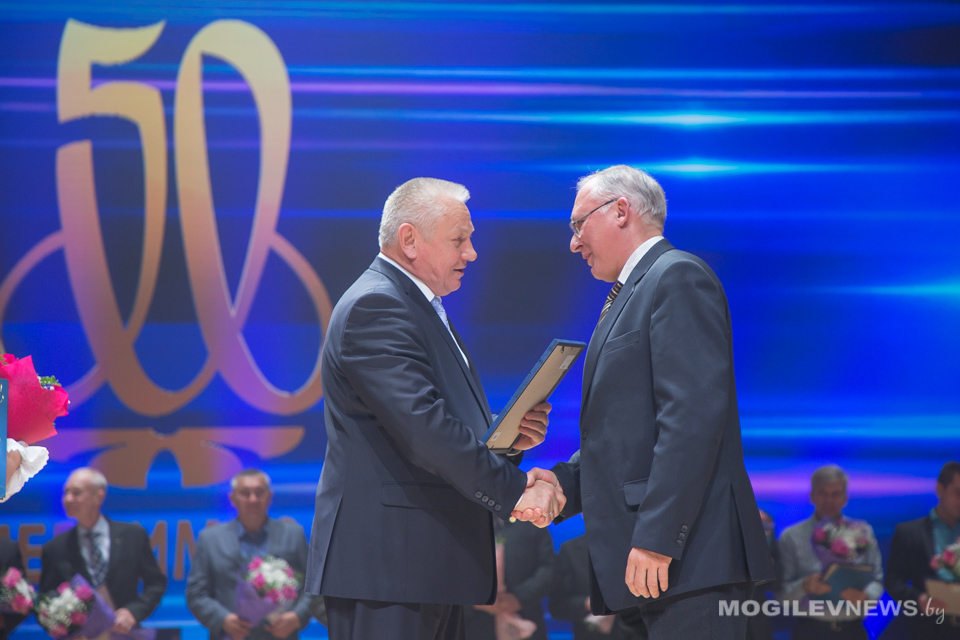 Торжественное мероприятие, посвященное 50-летию со дня получения первой продукции на ОАО «Могилевхимволокно», состоялось в Дворце культуры области. Благодарностями, грамотами и нагрудными знаками были отмечены ветераны труда, руководители и лучшие работники предприятия.