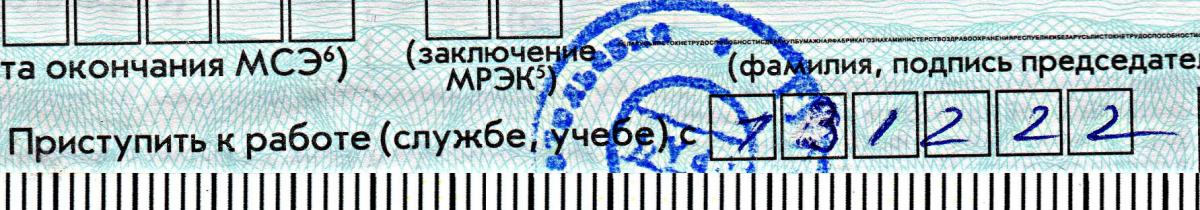 — В частности, сомнения вызывала дата в графе «Приступить к работе (службе, учебе)  с» – «131222». Тогда как последняя запись на приеме врача в разделе «освобождение от работы (службы, учебы)» датировалась 09.12.2022, — рассказала официальный представитель управления Государственного комитета судебных экспертиз по Могилевской области Ирина Рачковская. — В рамках проведения проверки по данному факту назначена судебная техническая экспертиза документов. По результатам исследований судебный эксперт пришел к выводу, что первоначальное содержание записи, расположенной в графе «Приступить к работе (службе, учебе) с» листка нетрудоспособности, подвергалось техническим изменениям способами подчистки части штрихов второй первоначальной цифры «0» с последующим выполнением поверх нее ныне читаемой цифры «3». Также две цифры «1» подвергались изменениям путем обводки. Первоначальное содержание записи –«101222».