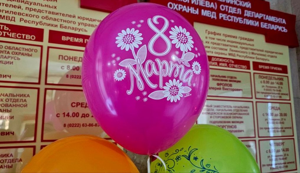 С самого утра мужчины Ленинского (г.Могилева) отдела Департамента охраны поздравляют своих женщин с самым прекрасным весенним праздником – 8 Марта!