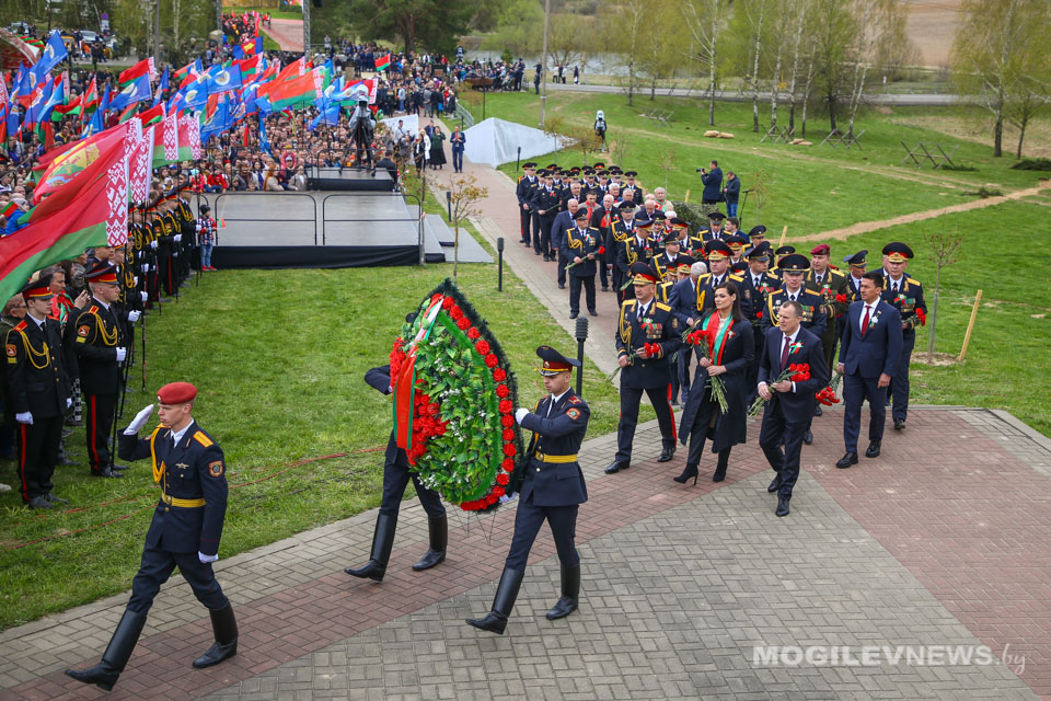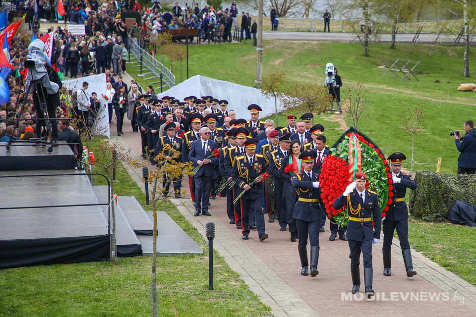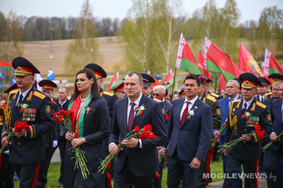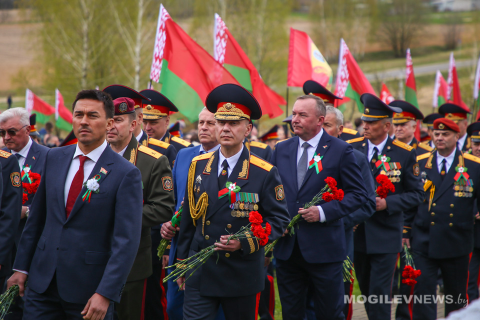 В этом знаковом месте собрались представители исполнительной власти, сотрудники органов внутренних дел и военнослужащие внутренних войск, ветераны органов внутренних дел и внутренних войск МВД, учащиеся и курсанты учреждений образования, члены ОО «Патриоты Беларуси», участники республиканского автопробега «Во имя Победы», чтобы почтить память тех, кто ценой своей жизни добыл мир на нашей земле.