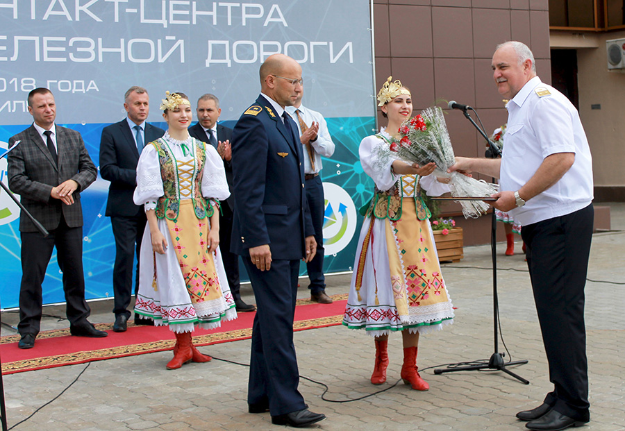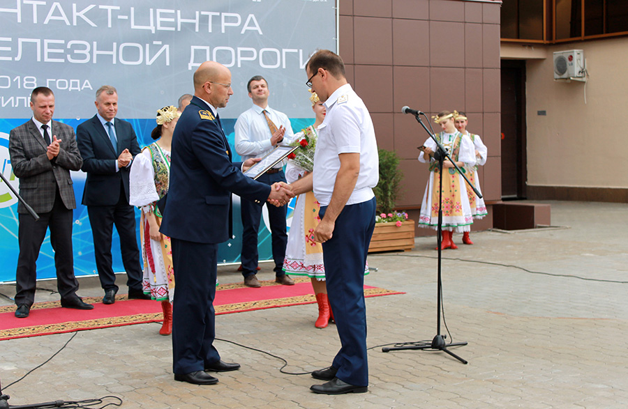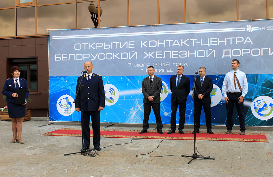 Торжественная церемония открытия единого контакт-центра Белорусской железной дороги по представлению круглосуточной оперативной информации, а также оказанию консультационной помощи гражданам в решении всех вопросов организации пассажирских перевозок состоялась на территории могилевского железнодорожного вокзала. В мероприятии приняли участие 1-й зам.председателя Моггорисполкома Александр Потемкин, начальник Белорусской железной дороги Владимир Морозов, а также представители операторов связи организаций Республики Беларусь, работники и ветераны Белорусской железной дороги.
