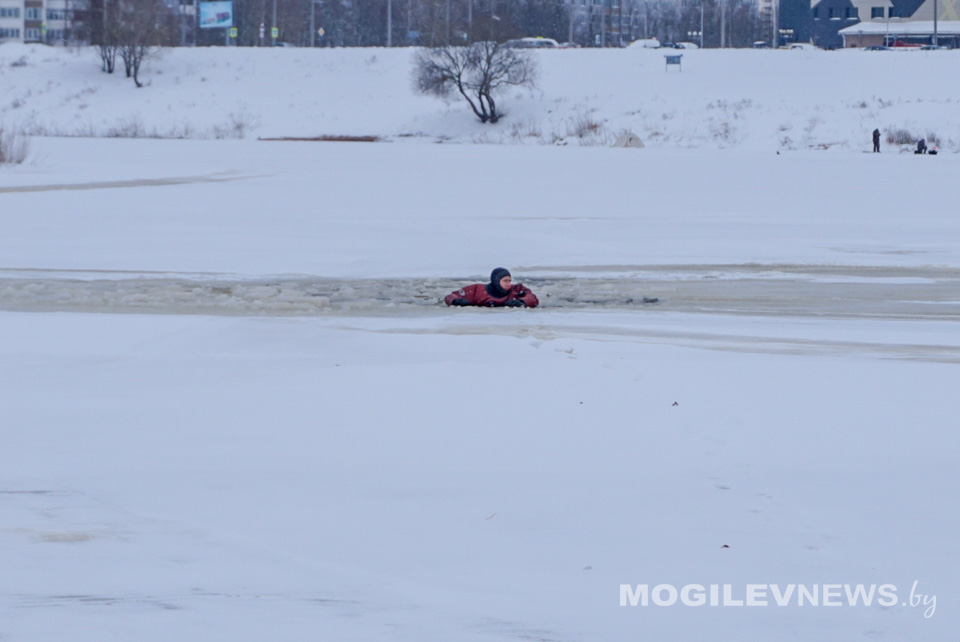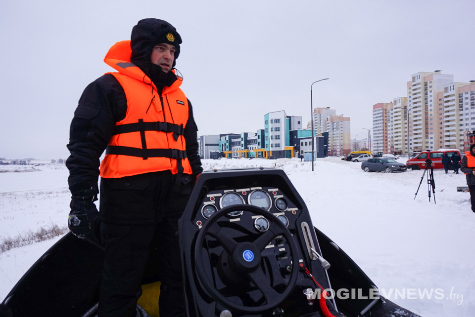 Спасатели акцентировали внимание рыбаков на том, какую серьезную угрозу безопасности представляет собой тонкий лед. Для наглядности на Фатинском заливе в Могилеве была смоделирована критическая ситуация, когда человек провалился под лед вдали от берега и не в состоянии самостоятельно выбраться из ледяного плена. На помощь ему пришли спасатели на специальном аэрокатере «Пиранья», который эффективно передвигается по льду и воде.