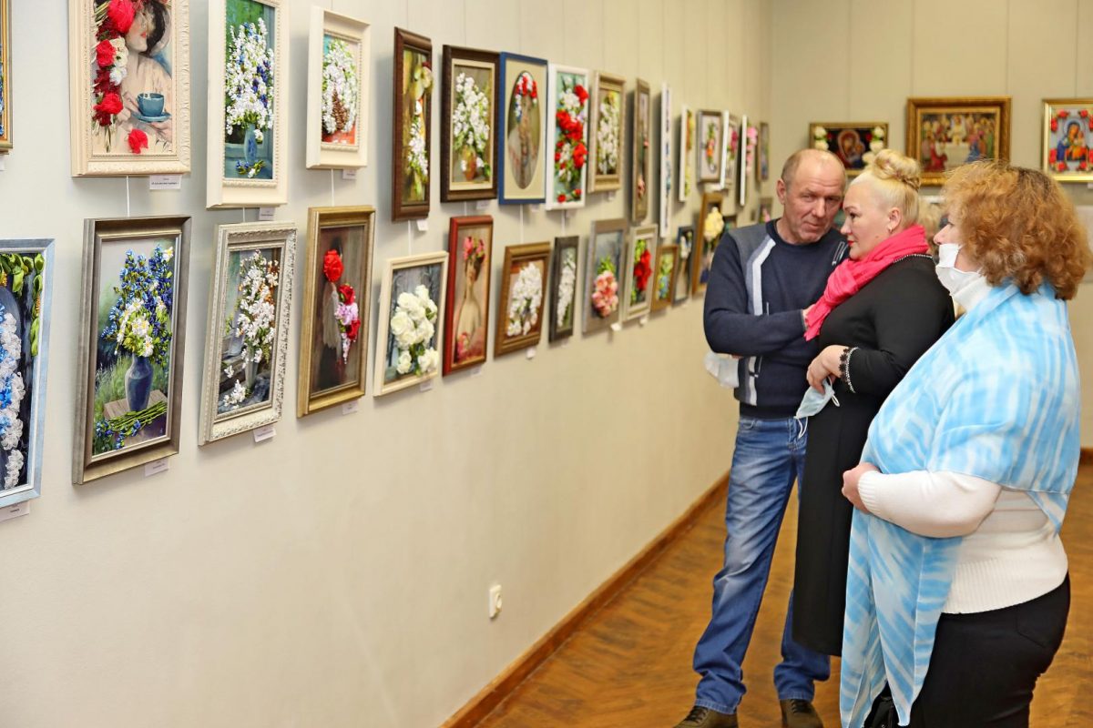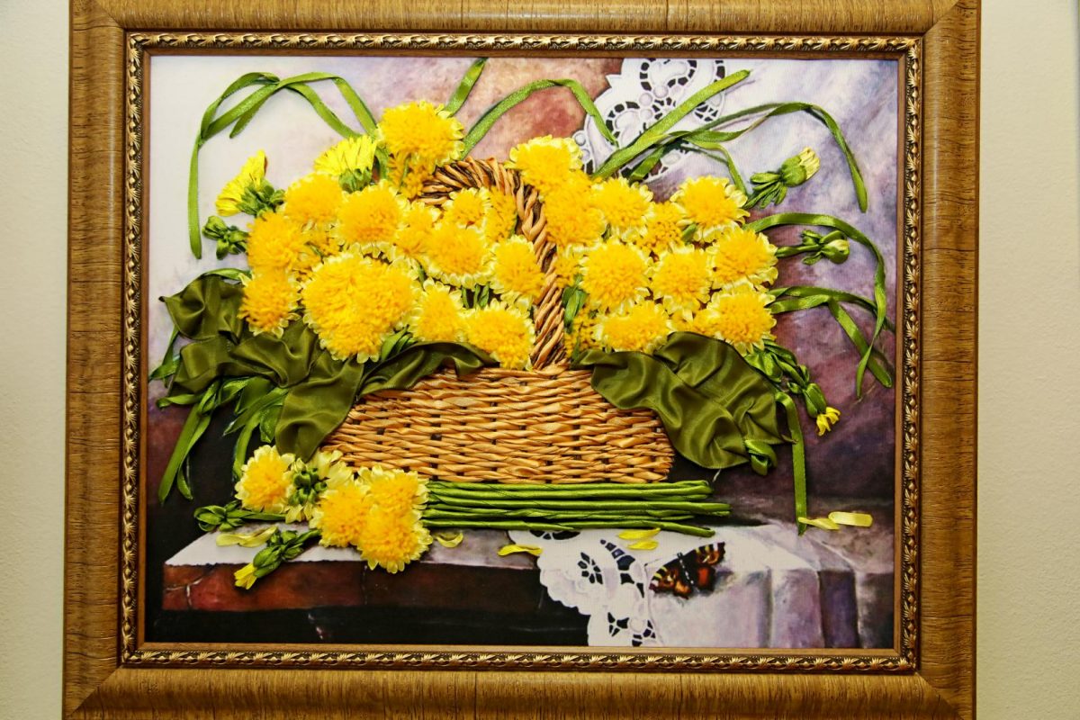 Как сообщает «Бабруйскае жыццё», на персональной выставке Елены Поляковой можно увидеть порядка 90 работ, вышитых атласными и шелковыми лентами — цветочные натюрморты, портреты, пейзажи, детские сюжеты.