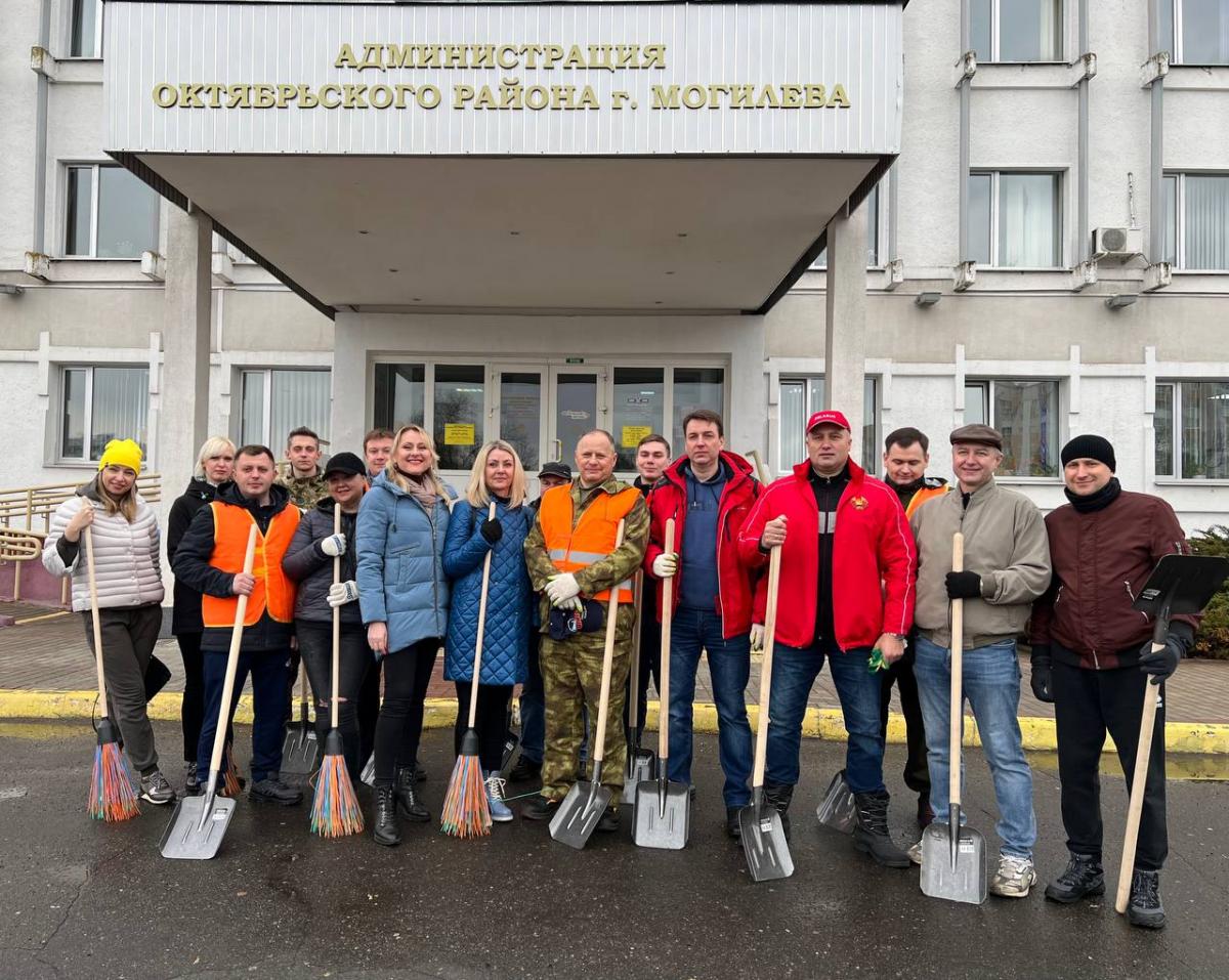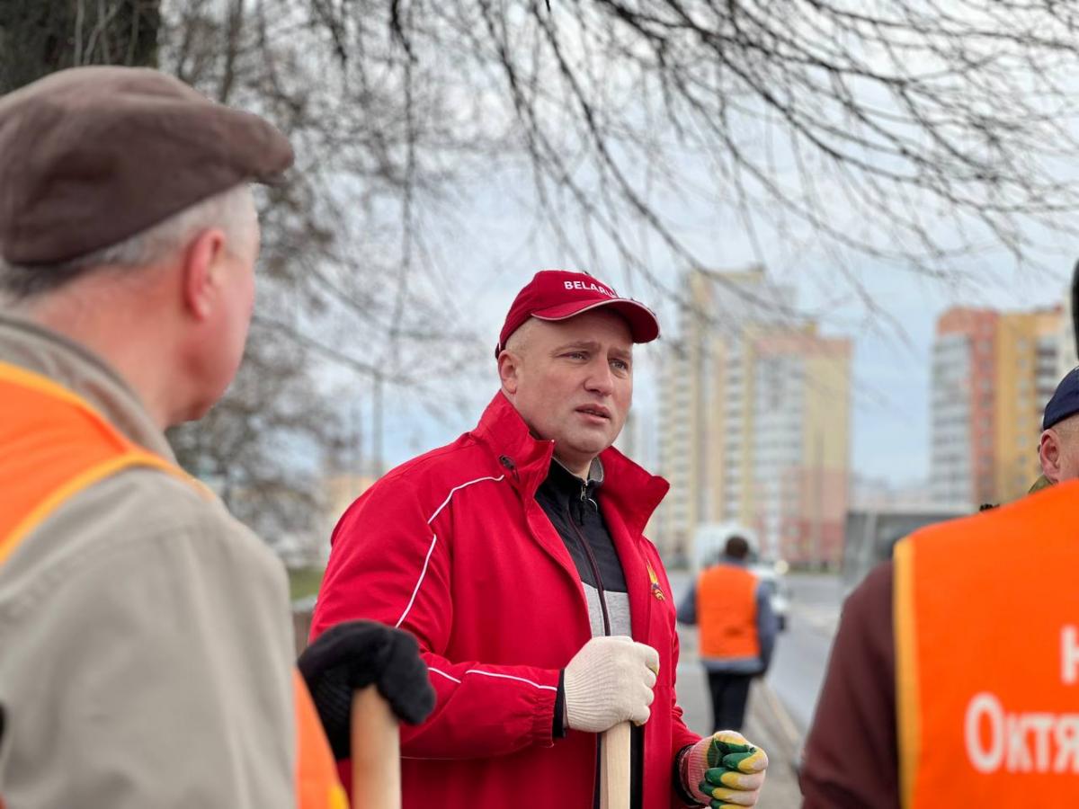 Глава администрации Октябрьского района Петр Соловьев вышел на субботник: «В Октябрьском районе на субботнике работают 6 тыс. человек, 300 единиц транспорта. Настроение у всех хорошее, трудовое. Все для нашего любимого города. Жителей, кстати, тоже привлекаем, чтобы в Могилеве было чище и красивей».