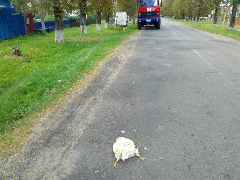 Как сообщили в УГАИ УВД облисполкома, водитель автомобиля «Фольксваген LT-46», заметив выбежавшую на проезжую часть дороги курицу, во избежание наезда резко затормозил и изменил направление движения. Не справившись с управлением, он съехал в кювет и совершил наезд на придорожное дерево.