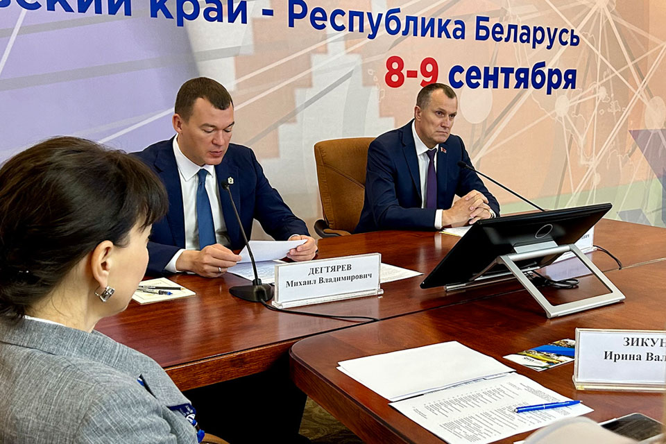 В свою очередь губернатор Хабаровского края Михаил Дегтярев отметил, что после подписания соглашения о взаимодействии и сотрудничестве в торгово-экономической, научно-технической, социальной и культурной сферах между Хабаровским краем и Беларусью в мае прошлого года торговля удвоилась в абсолютных цифрах.