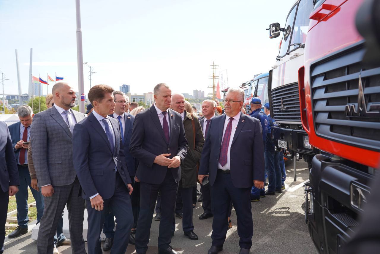 После открытия Дней Республики Беларусь в Приморском крае главы белорусского и российского регионов ознакомились с выставкой белорусской крупногабаритной техники, где разместились грузовики, коммунальная и дорожная техника белорусского производства, часть которой уже используется на приморских дорогах и в хозяйствах российского региона, и посетили ярмарку-продажу, на которой представлена молочная, мясная, кондитерская и хлебобулочная продукция известных белорусских производителей.