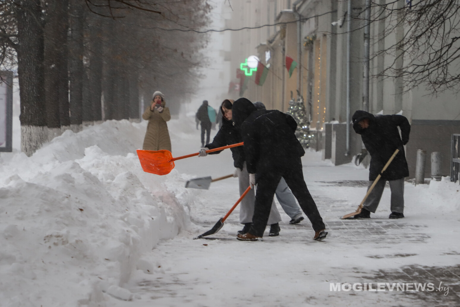 К работе коммунальных и дорожных служб, которые трудятся в усиленном режиме, активно подключаются трудовые коллективы предприятий, организации, общественные объединения и, конечно, волонтеры. Снег убирают сообща, демонстрируя настоящую могилевскую солидарность. Особенно приятно видеть на улицах молодежь, которая, вооружившись лопатами, вносит свой весомый вклад в противостояние снежной стихии.