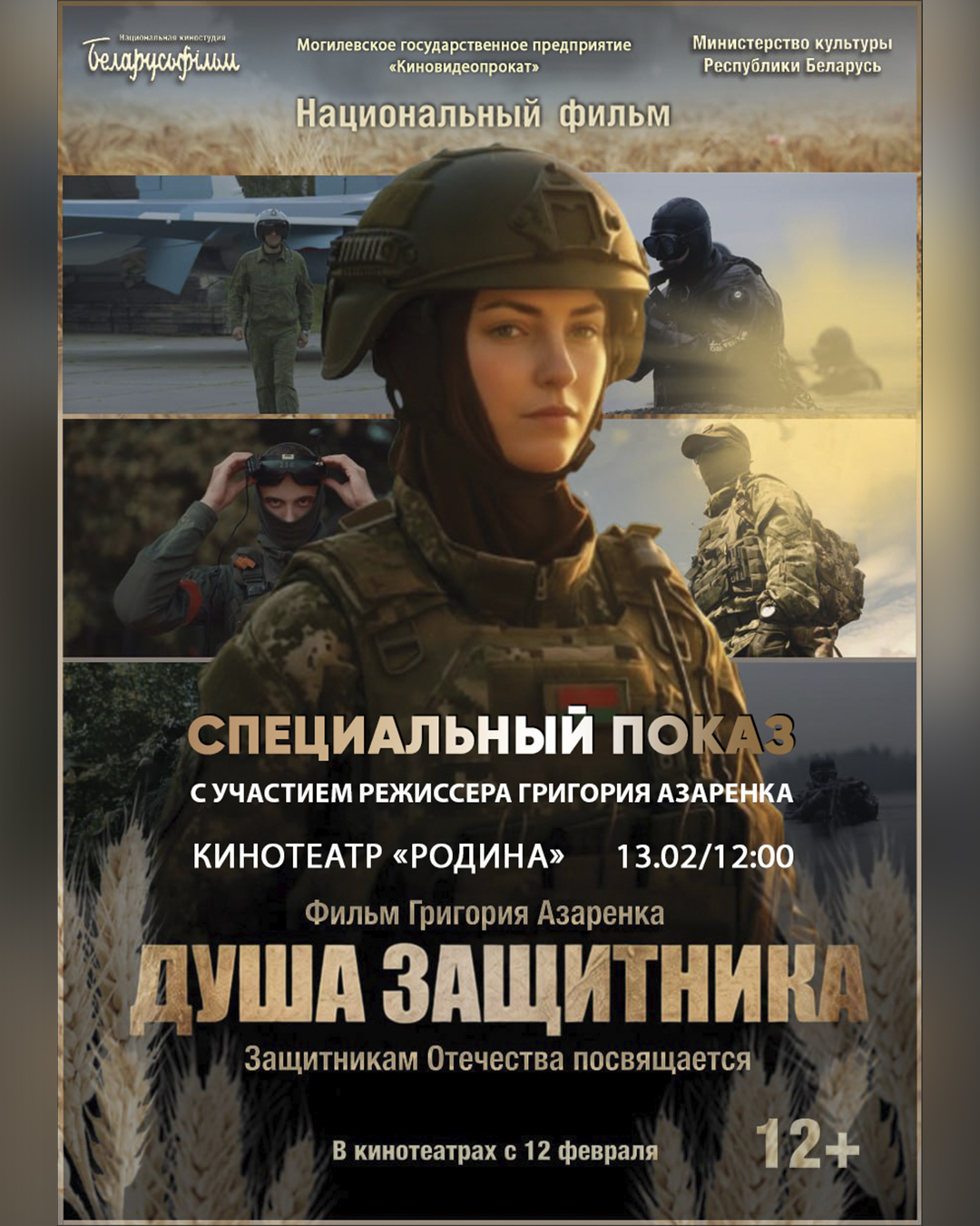С 12 февраля в прокат выходит документальный фильм «Душа защитника» — новая работа киностудии «Беларусьфильм» режиссера и тележурналиста Григория Азаренка. Картина приурочена ко Дню защитников Отечества и Вооруженных Сил Республики Беларусь.
