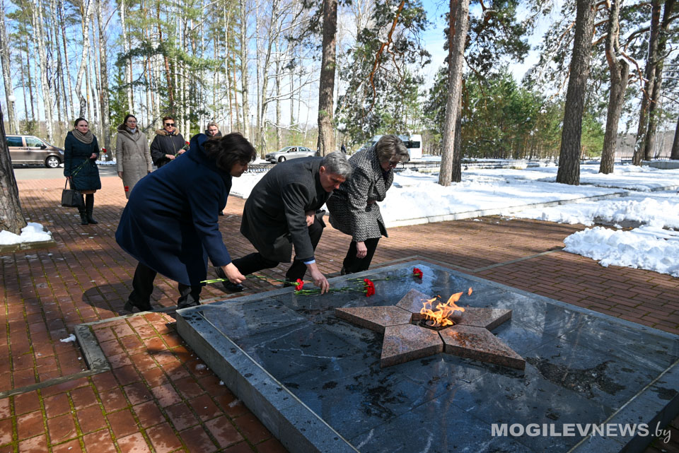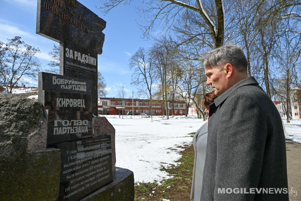 Торжественное мероприятие открылось у памятного знака военным журналистам Могилевской области — тем, кто в годы войны не только писал о событиях с передовой, но и сам нередко находился под огнем. Именно от этого символичного места началось движение проекта, который призван объединить поколения через память, увековеченную в обелисках, монументах и братских могилах.