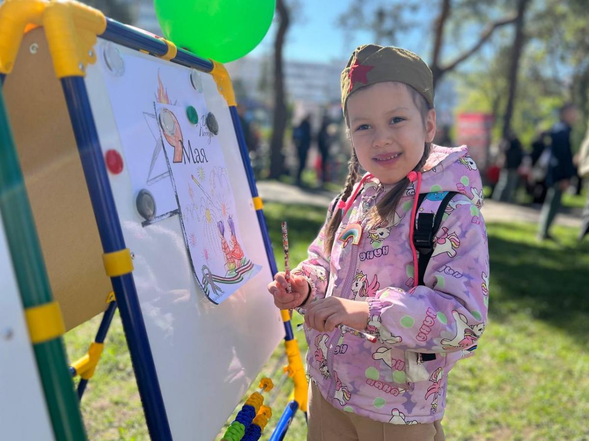 Здесь работали интерактивные развлекательные и образовательные площадки для детей, проходил тематический концерт с военными и патриотическими песнями.