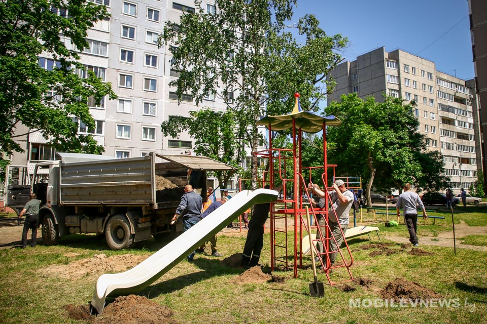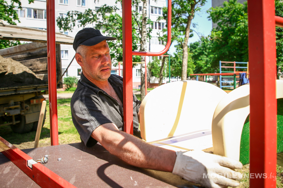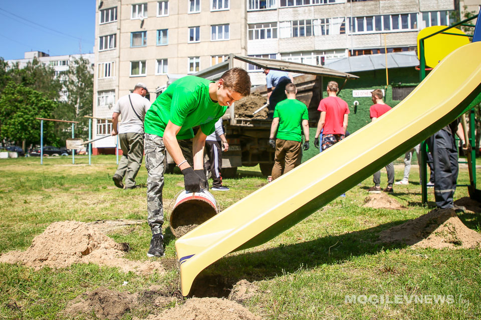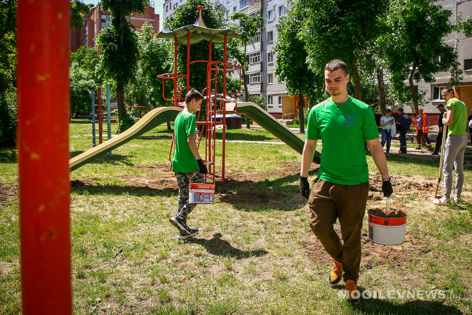 Две детские площадки во дворах домов на Шмидта помогли благоустроить волонтеры БРСМ. Мероприятия в рамках акции «#раЗАм з бацькамі!» по наведению порядка пройдут в Могилевской области с 9 по 15 июня. Всего в регионе благоустроят 25 детских площадок.