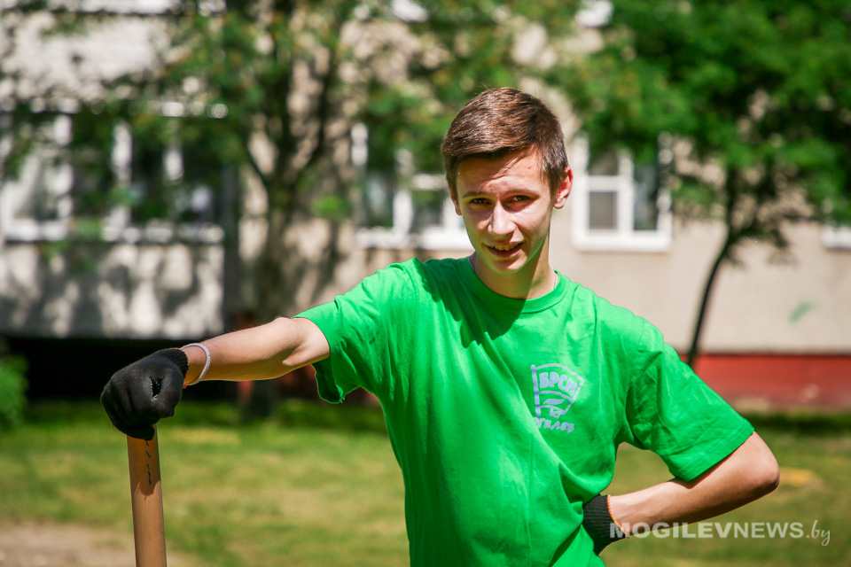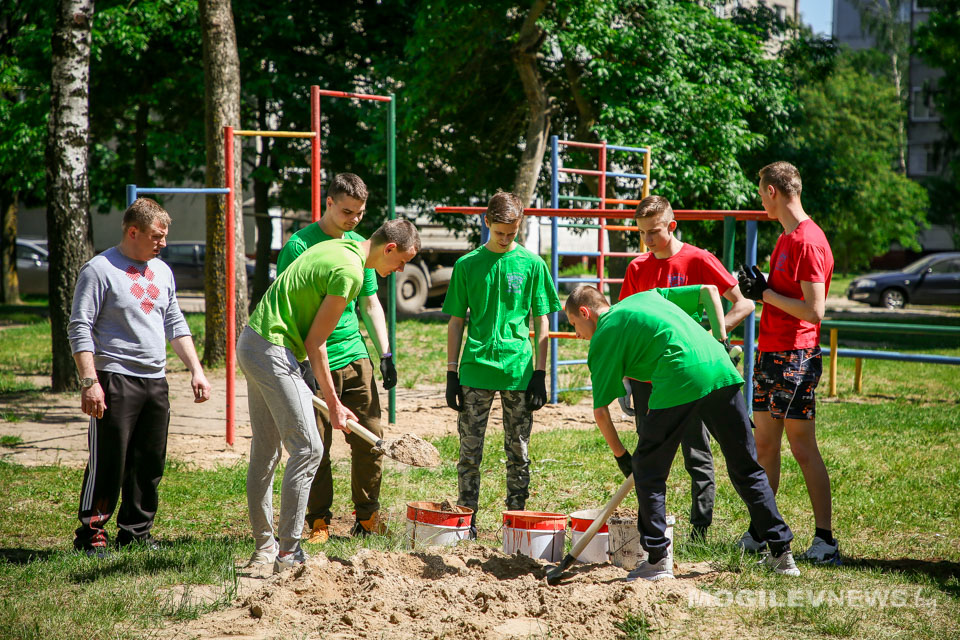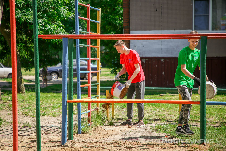Две детские площадки в Могилеве помогли благоустроить волонтеры БРСМ. Фото