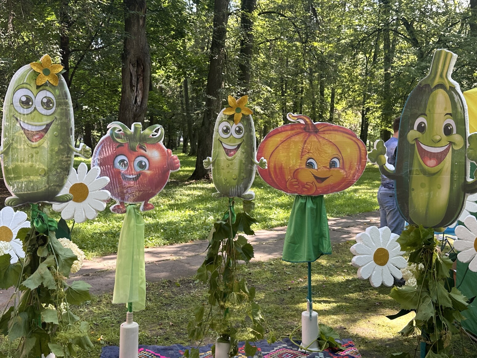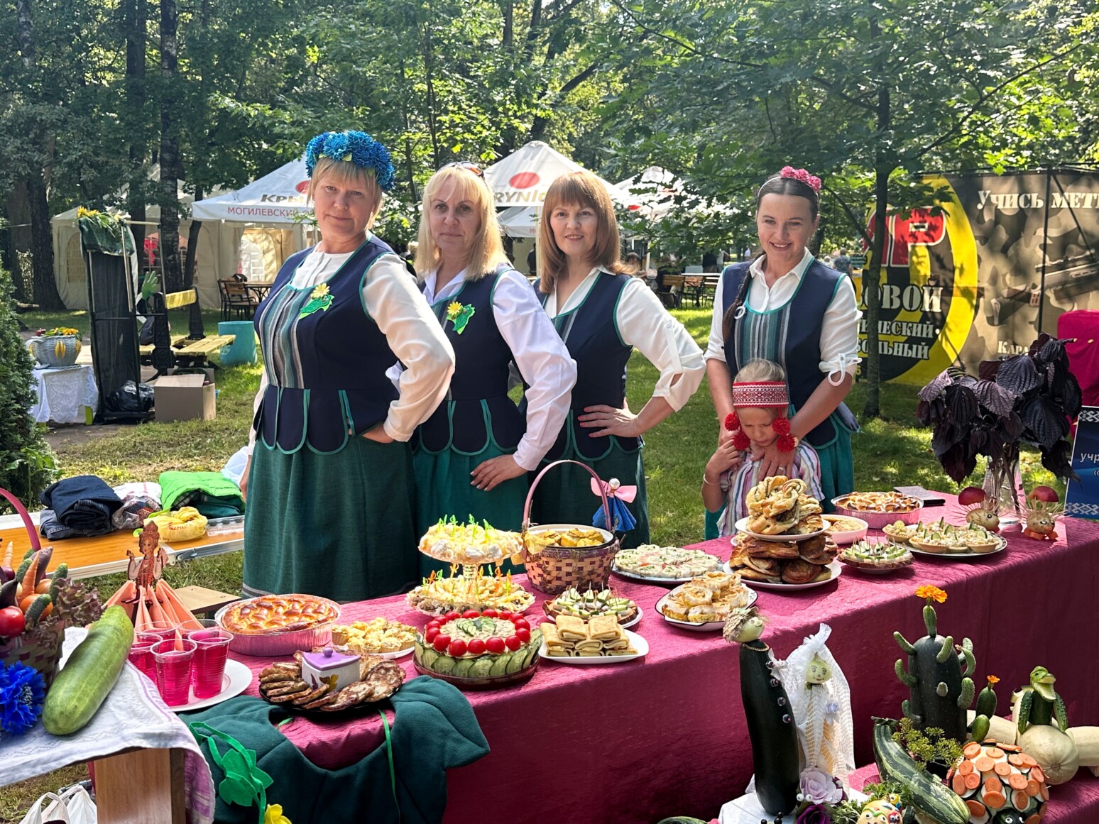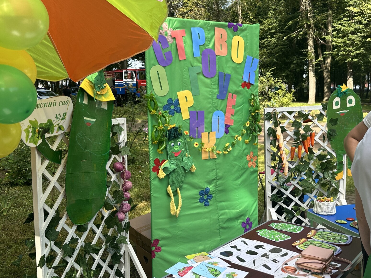 Гостей ждало множество сюрпризов: в парке развернулся гастрономический фестиваль с дегустацией огуречных блюд, ярмарка мастеров, фотозоны и разнообразные конкурсы — от спортивных состязаний «Мама, папа, я — спортивная семья» до веселых аукционов и турниров.