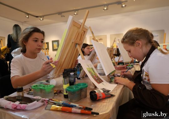 За несколько часов юным талантам удалось создать целую галерею. Поддержать их пришли не только педагоги, но также депутат Палаты представителей Национального собрания Светлана Шутова, заместитель председателя Глусского райисполкома Анатолий Ласоцкий, председатель районного объединения профсоюзов Сергей Сличенок, руководитель районной организации Белорусского фонда мира Елена Кирей. Дети получили от гостей подарки.
