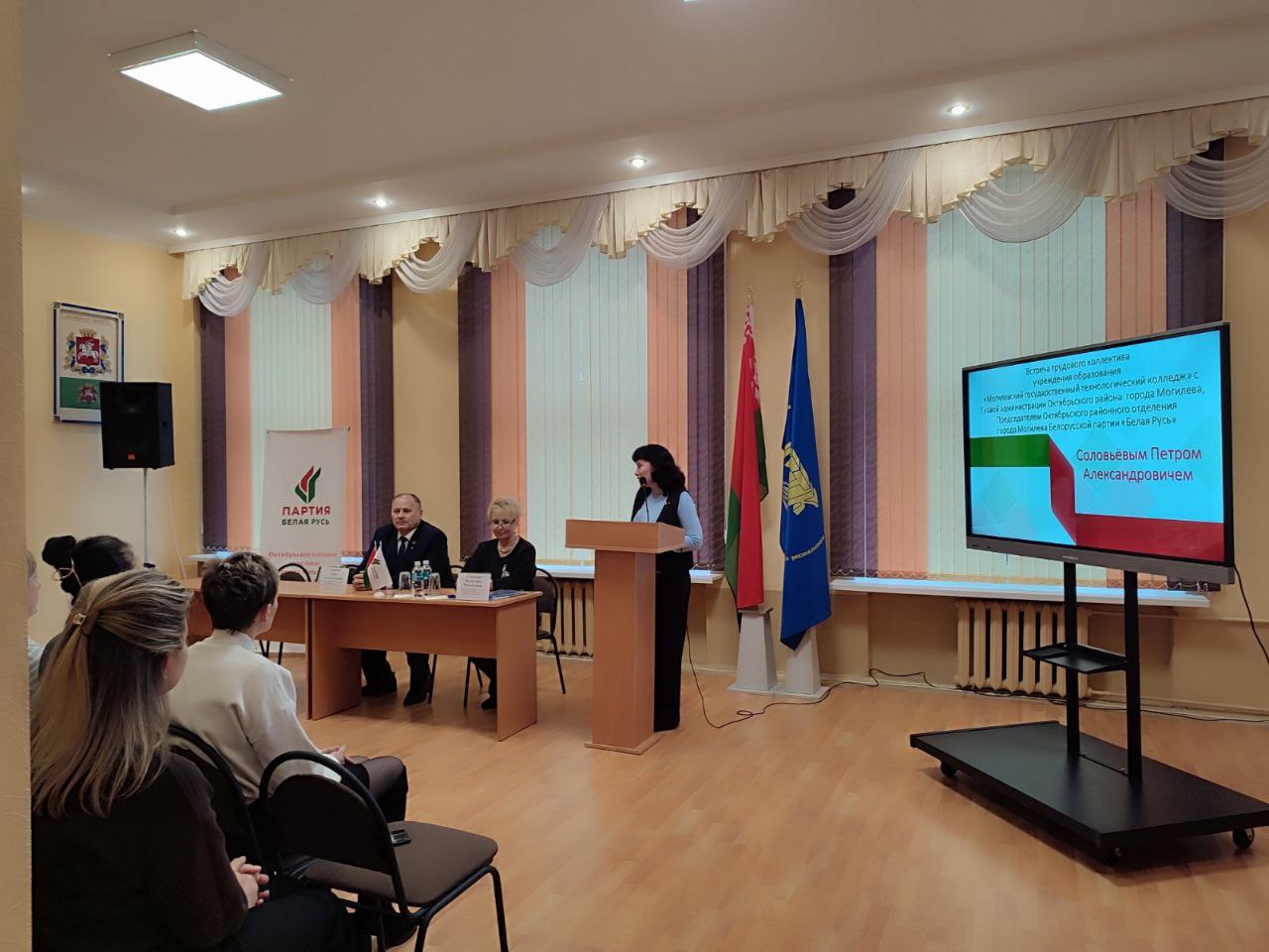 В Могилевском государственном технологическом колледже состоялась встреча председателя Октябрьского районного отделения Белорусской партии «Белая Русь», главы администрации Октябрьского района Петра Соловьева с трудовым коллективом учреждения образования.
