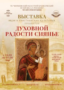 Экспозиция, сформированная из фондов Могилевского областного краеведческого музея имени Е.Р. Романова, перенесет посетителей в духовный мир Приднепровского края XVII–XIX веков и представит шедевры, которые много лет скрывались от глаз широкой публики.