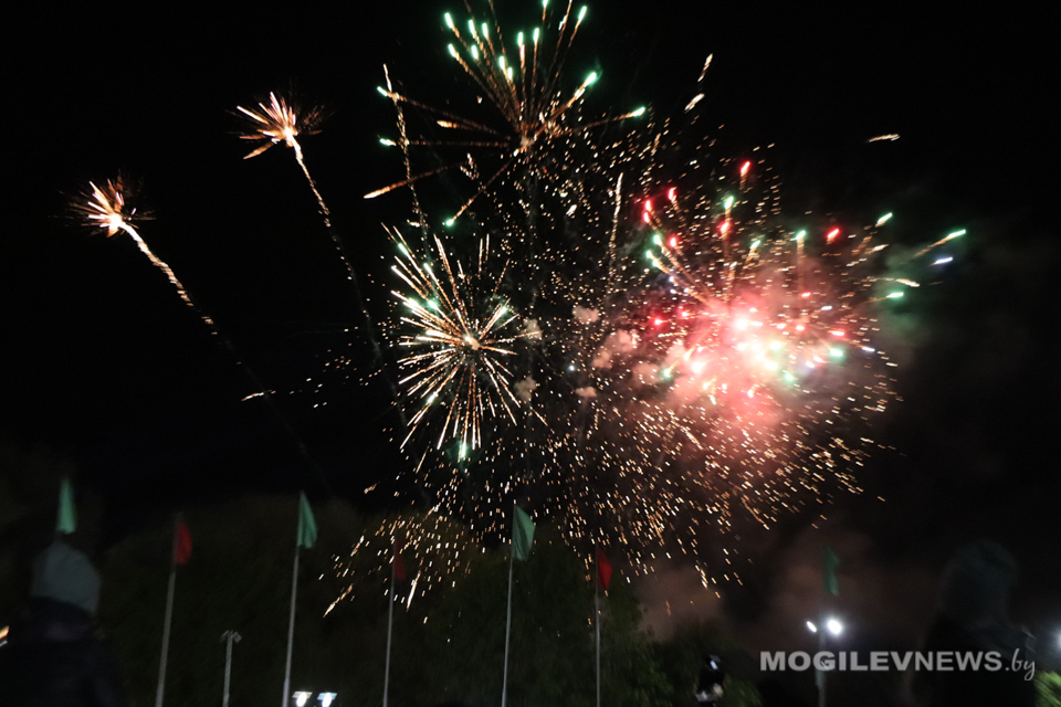 Ярким финалом праздничных мероприятий, посвященных 9 Мая, в Могилеве стал красочный фейерверк, который приковал к себе внимание всех жителей и гостей. Ночное небо над городом озарили тысячи залпов разноцветных огней.