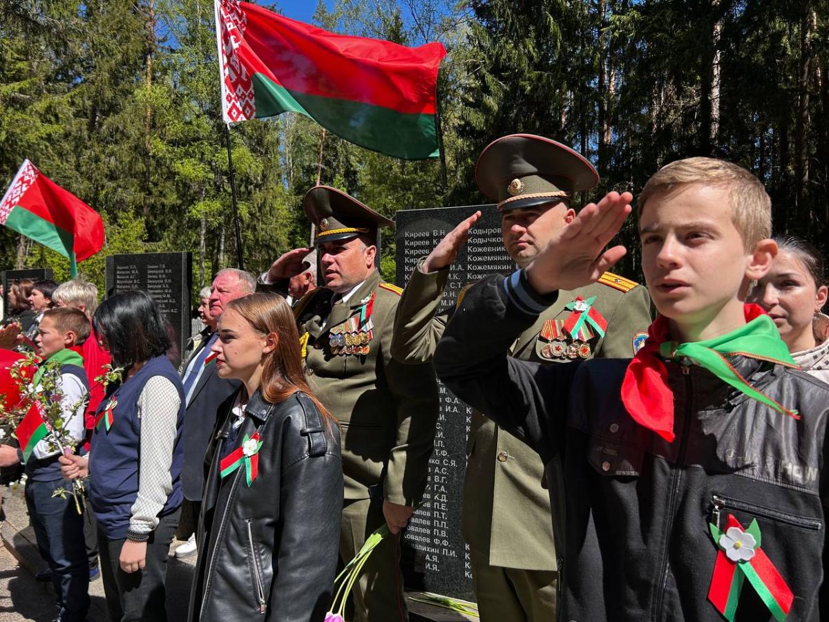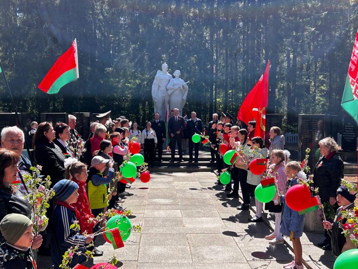 В праздничный день по традиции на этом святом месте собрались жители Осиновского сельсовета, гости района, молодежь и дети, ветераны труда и представители руководства Чаусского района, трудовых коллективов, общественных объединений, политических партий, чтобы принести цветы и почтить память погибших защитников Родины.