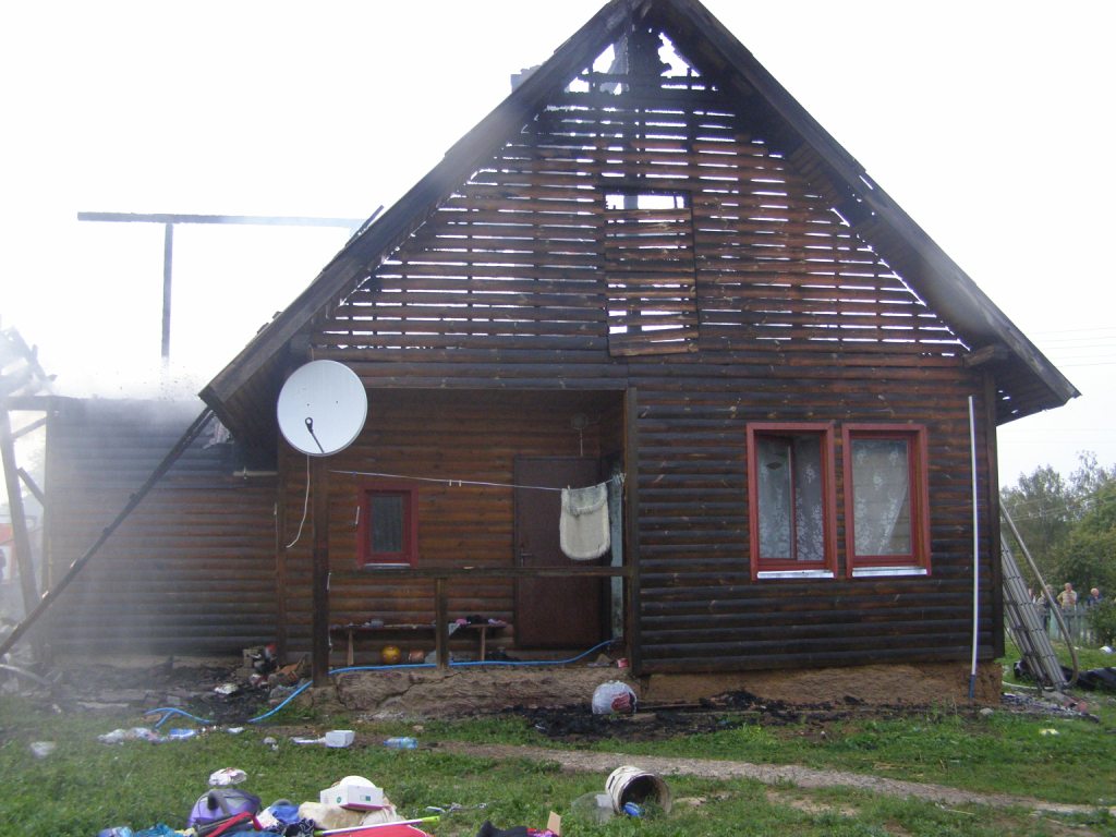 Люди не пострадали. В доме уничтожена кровля, повреждено перекрытие и стены.