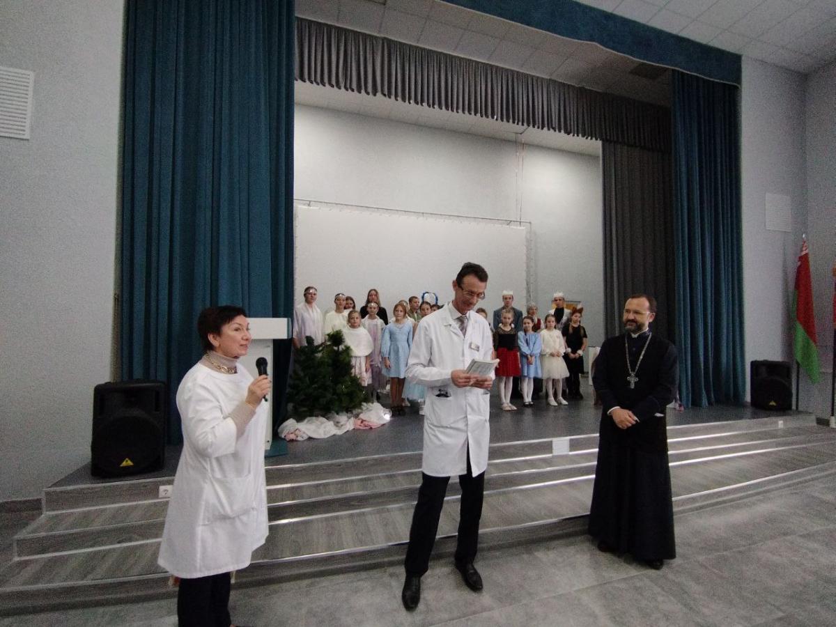С подарками и театрализованным представлением приехали в Могилёвскую областную детскую больницу настоятель храма Покрова Пресвятой Богородицы агрогородка Вейно – протоиерей Николай Остапчук и учащиеся Вейнянской СШ. Они поздравляли юных пациентов с Рождеством и Святками, которые проходят от Рождества до Крещения.