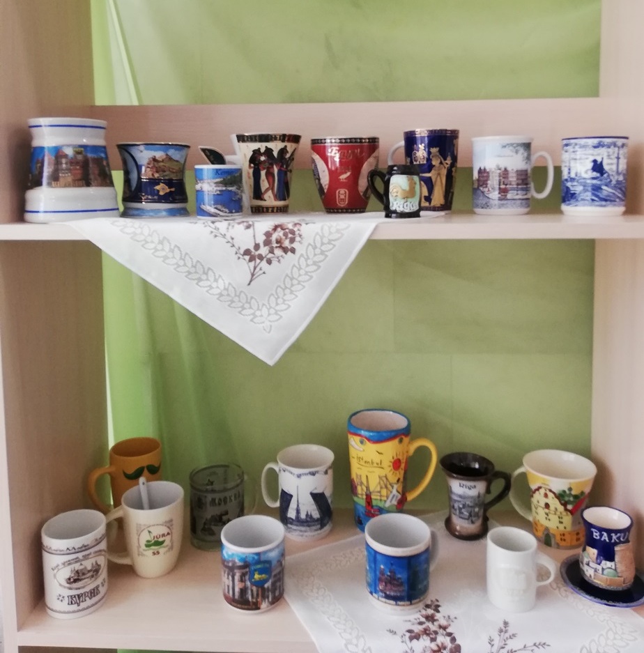 На выставке собраны чашки из городов России и Беларуси, Японии, Китая, Египта, Германии, Югославии, Латвии, Эстонии, Чехословакии, Франции, Венгрии, Азербайджана, Турции и т.д.
