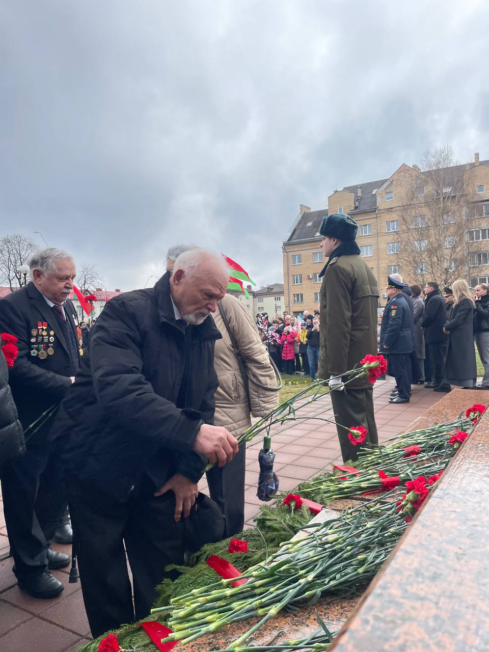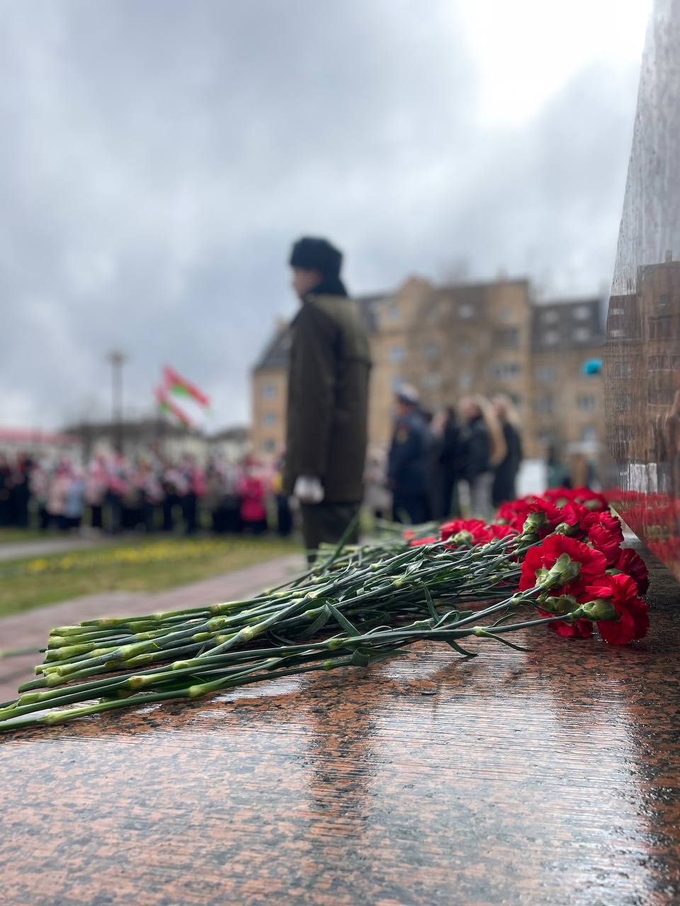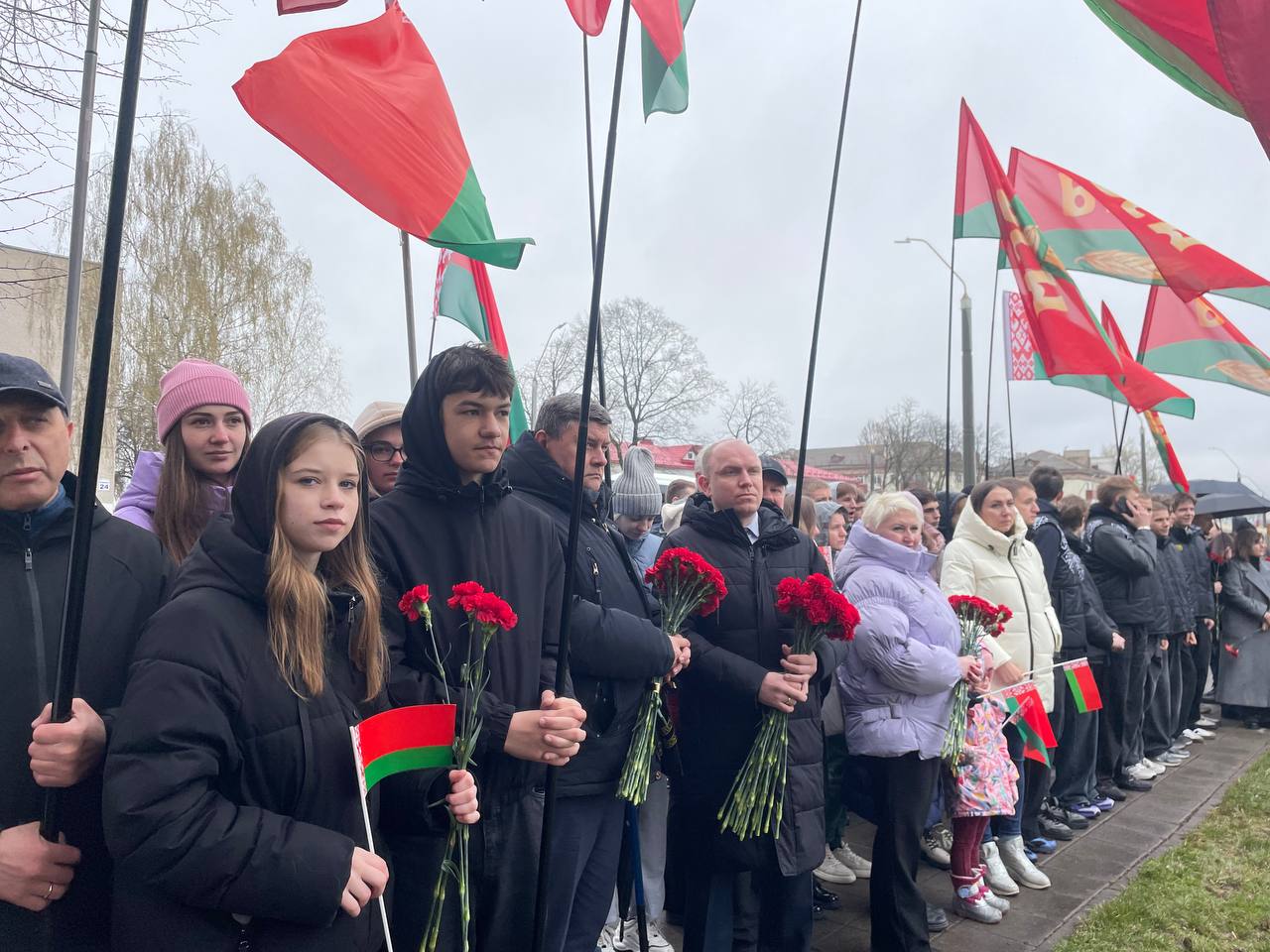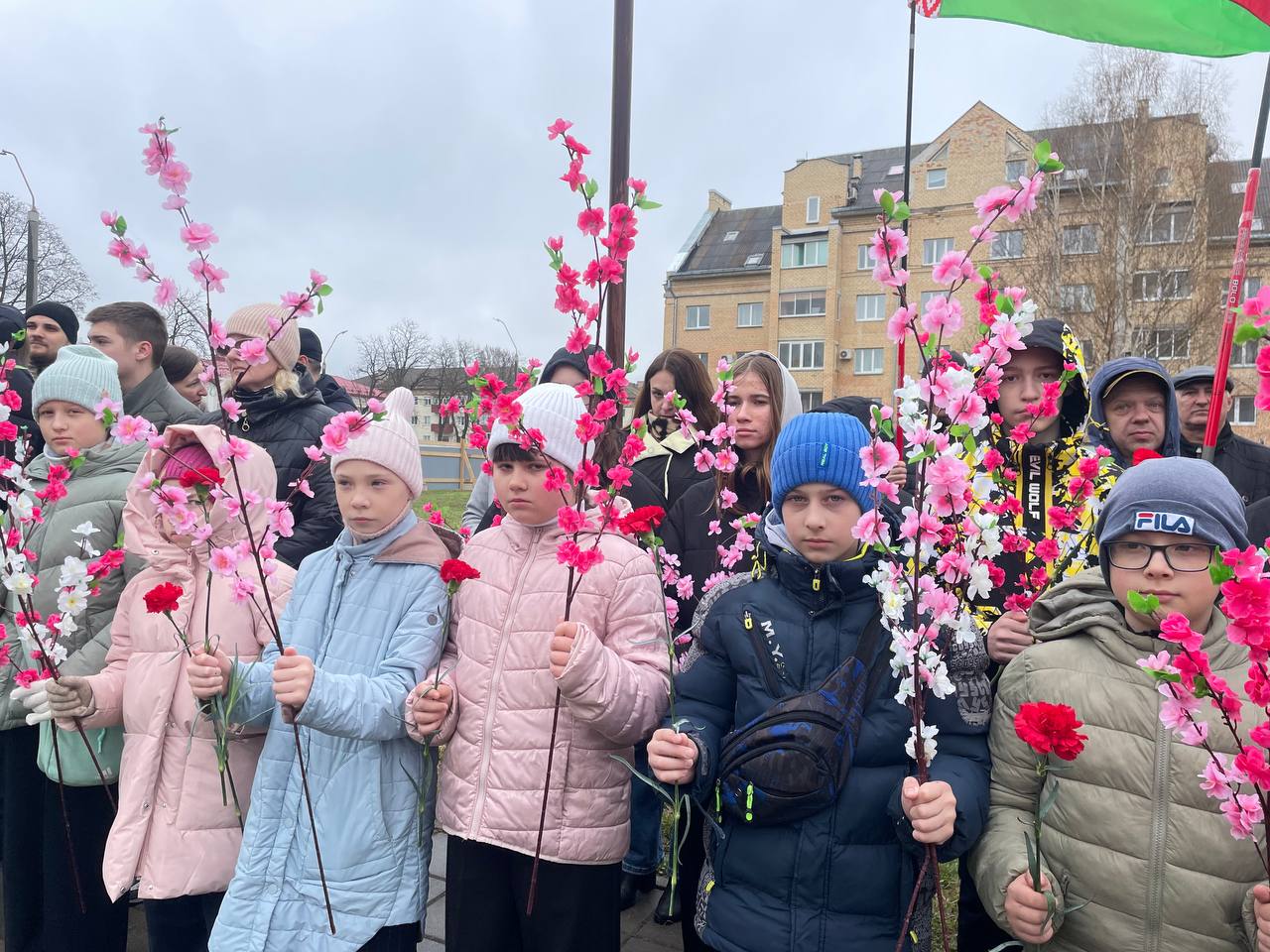 После выступлений к подножию монумента легли венки и живые цветы. В полной тишине над площадью повисла минута молчания — шестьдесят секунд, вместившие в себя скорбь по миллионам невинных жертв, сожженных деревень и оборванных детских жизней.